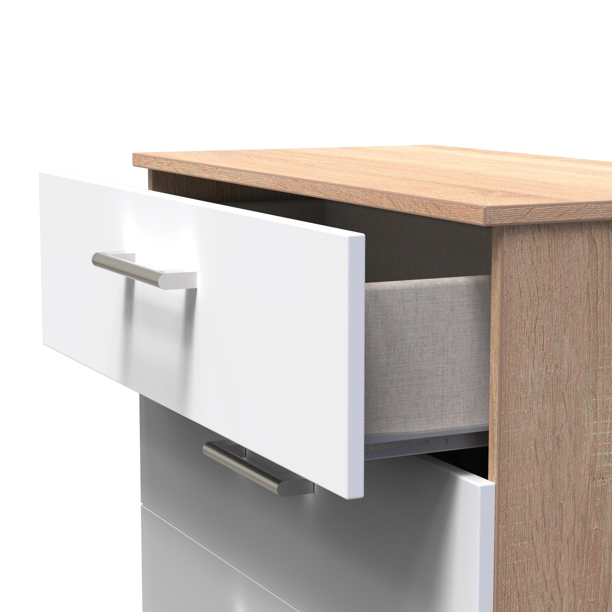 Devon Tall Chest of Drawers White & Oak 4 Drawers 108cm