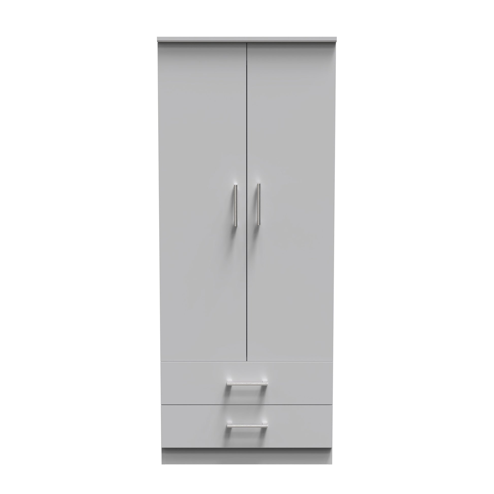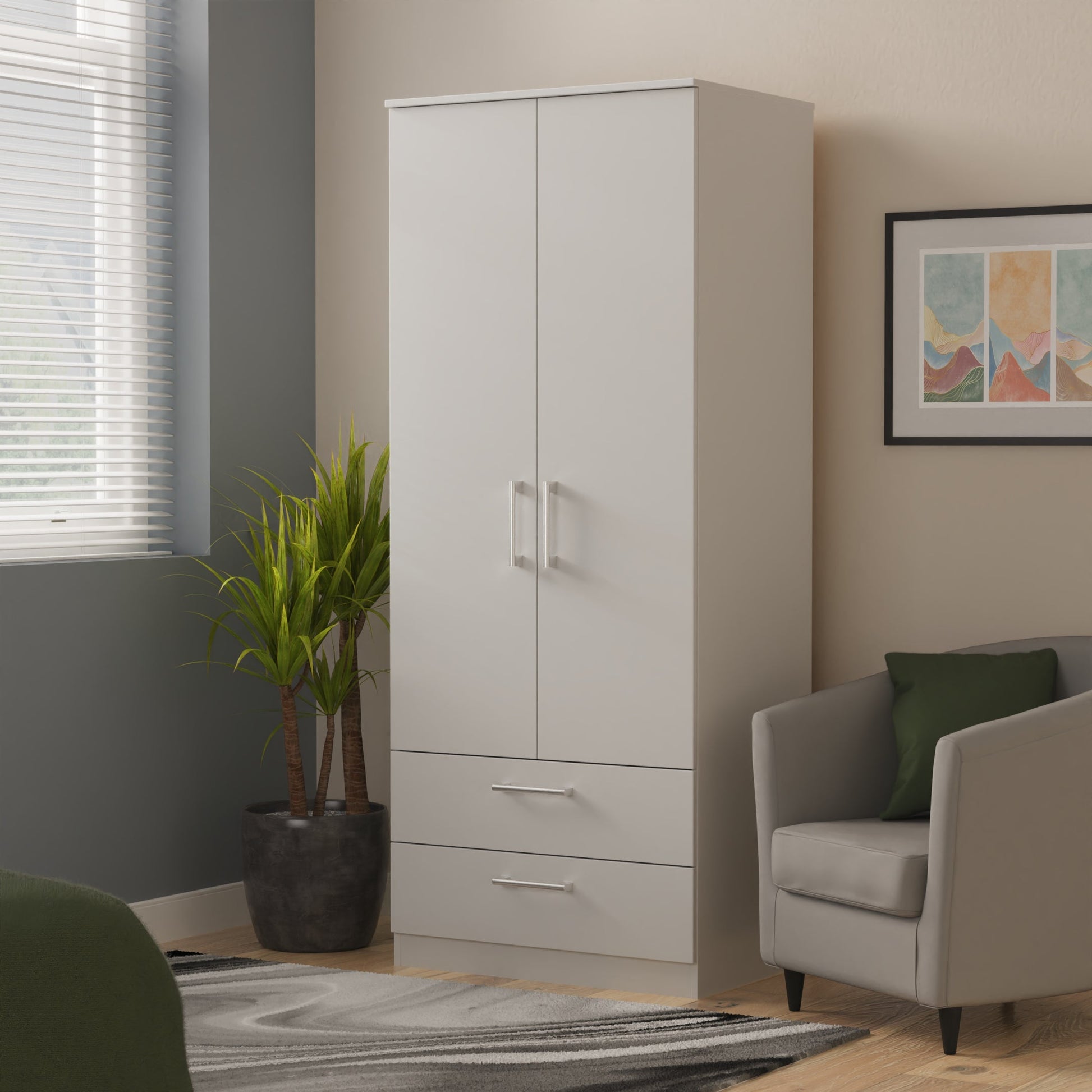 Devon Tall Wardrobe Grey 2 Doors 2 Drawers 182cm