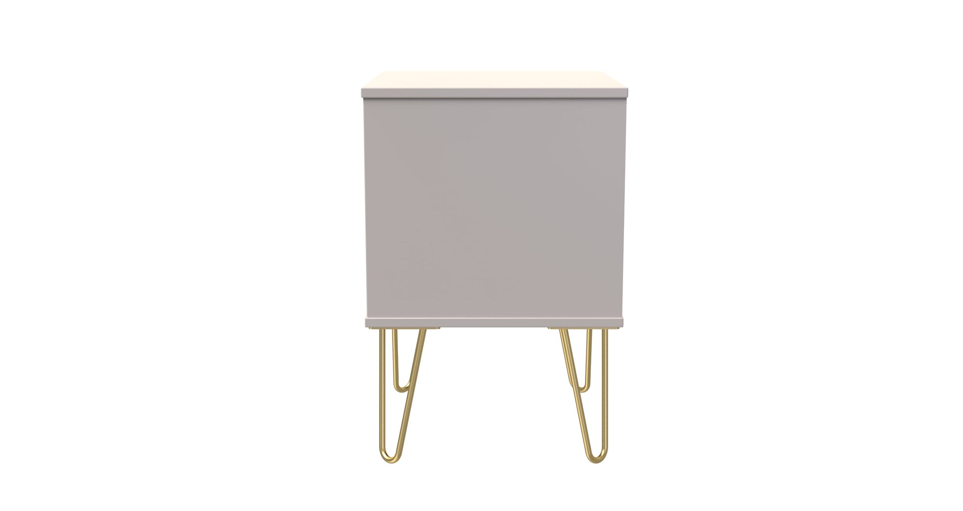 This 2 drawer bedside cabinet is practical and stylish. Perfect for any bedside or as a free standing storage unit. Say hello to contemporary cool with this modern range, with distinctive patterned drawers and a variety of colour options available to compliment any interior design. Gold metal handles and sturdy hairpin legs complete the storage solution. All our furniture is made to order in the United Kingdom, to the highest quality. It is delivered within 10 working days direct to your location of choice by one of our two man delivery teams, and comes fully assembled (although legs may be removed to prevent damage in transit). Part of the Diamond Collection.