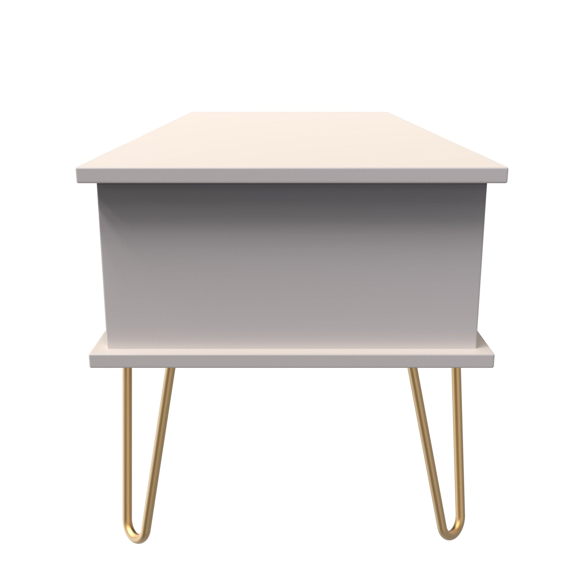 This modern coffee table, has a single storage drawer and open shelf stroage area. Say hello to contemporary cool with this modern range, with distinctive patterned drawers and a variety of colour options available to compliment any interior design. Gold metal handles and sturdy hairpin legs complete the storage solution. All our furniture is made to order in the United Kingdom, to the highest quality. It is delivered within 10 working days direct to your location of choice by one of our two man delivery teams, and comes fully assembled (although legs may be removed to prevent damage in transit). Part of the Diamond Collection.