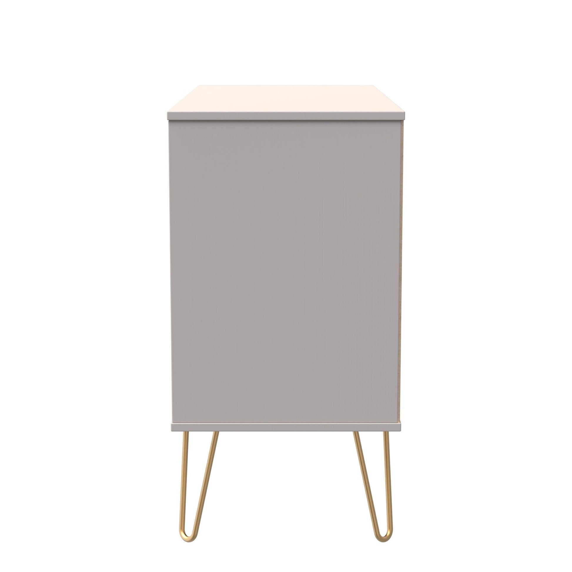 This modern storage unit features 3 drawers and a large storage area with a single shelf. Can be used as a TV/Media unit or sideboard. Say hello to contemporary cool with this modern range, with distinctive patterned drawers and a variety of colour options available to compliment any interior design. Gold metal handles and sturdy hairpin legs complete the storage solution. All our furniture is made to order in the United Kingdom, to the highest quality. It is delivered within 10 working days direct to your location of choice by one of our two man delivery teams, and comes fully assembled (although legs may be removed to prevent damage in transit). Part of the Diamond Collection.