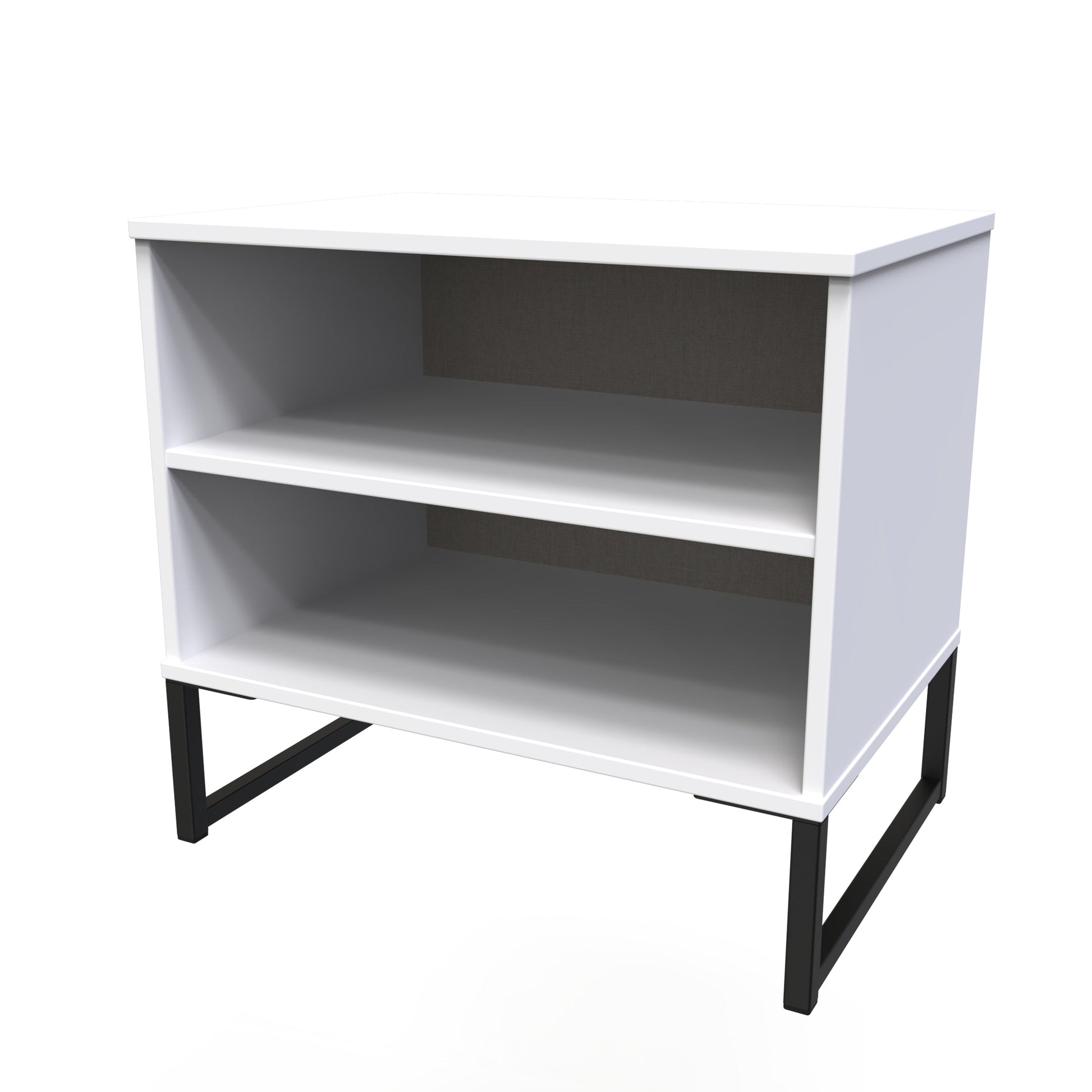 This modern storage cabinet features 2 large open storage compartments. A truly unique style that will be the highlight of any bedroom. This furniture set is popular for its Scandinavian style and industrial feel. Constructed from sturdy materials with metal handles and frame legs. Elevate your space with this range, featuring plenty of storage, so it's incredibly practical for keeping rooms clutter free and tidy. All our furniture is made to order in the United Kingdom, to the highest quality. It is delivered within 10 working days direct to your location of choice by one of our two man delivery teams, and comes fully assembled (although legs may be removed to prevent damage in transit). Part of the Diego G Collection.