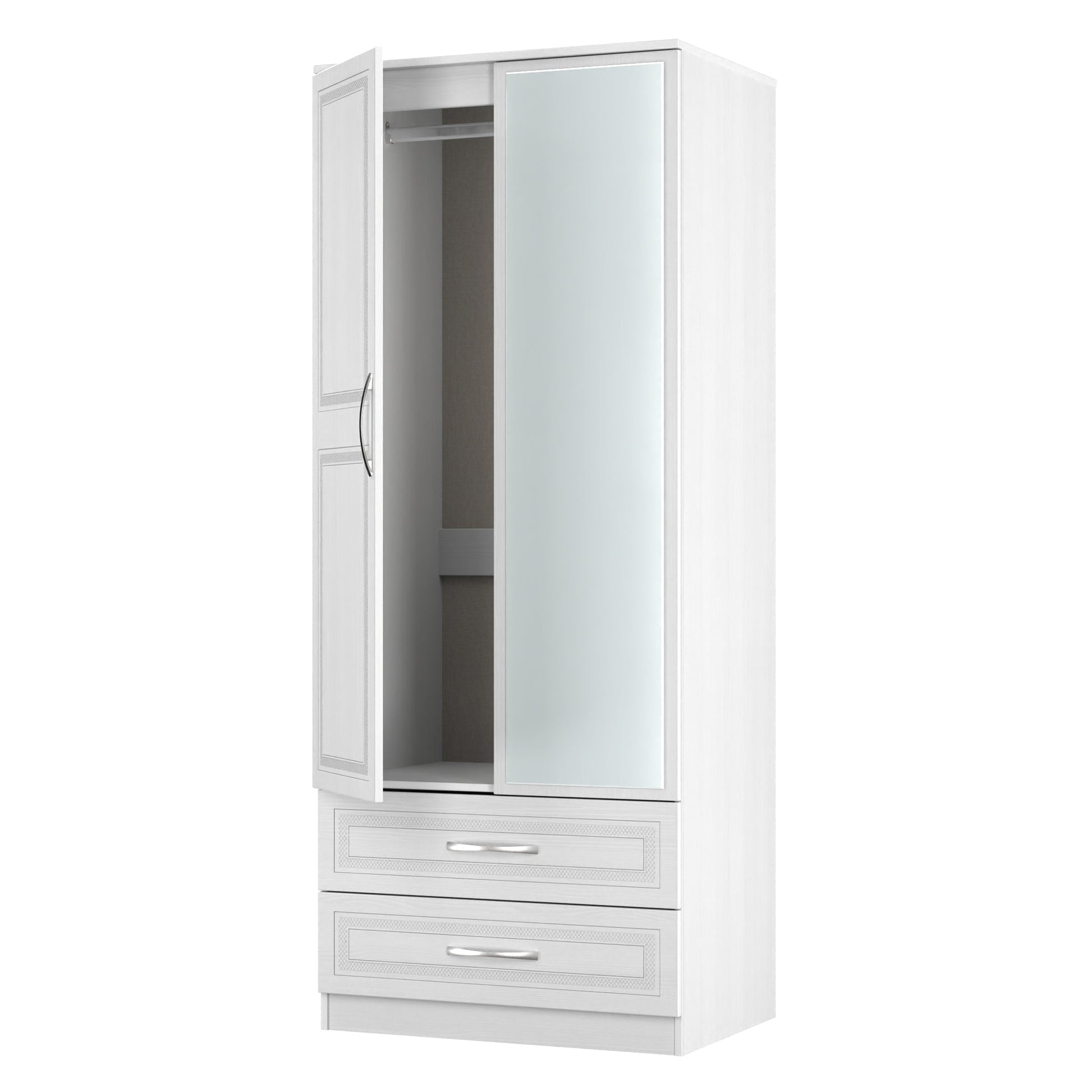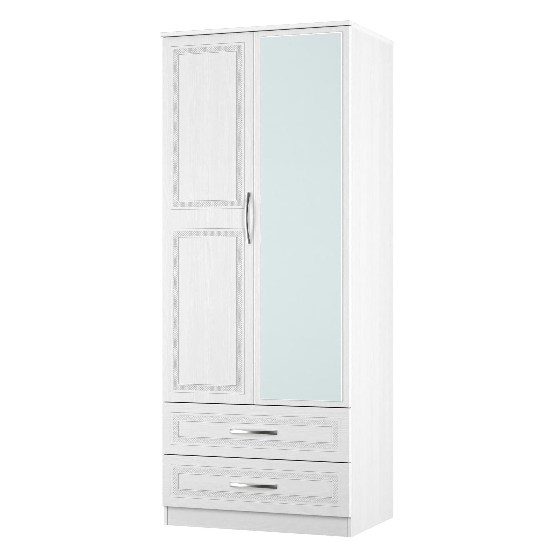 Dorset Tall Mirror Wardrobe White 2 Doors 2 Drawers 182cm