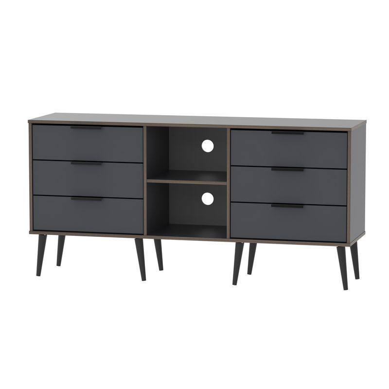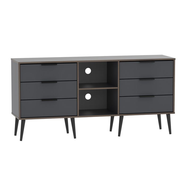 Drayton TV Unit Natural & Black 2 Shelves 6 Drawers