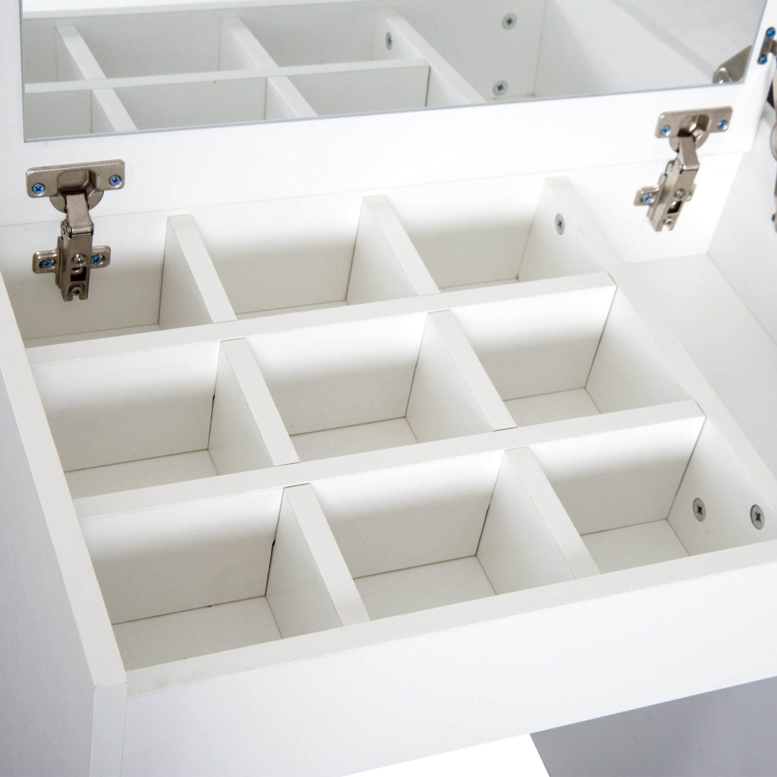 Dressing Table Set Padded Stool Dresser with Flip-up Mirror Multi-purpose - White