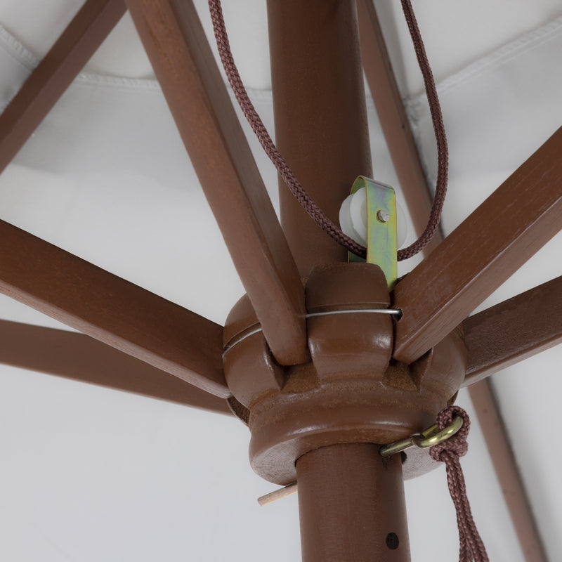 This wooden parasol is perfect for chilling out in the garden. A handy single pulley system means you can set it up quickly, and it will easily fit into garden tables. Showerproof, this parasol is ideal for light rain as well as sun.