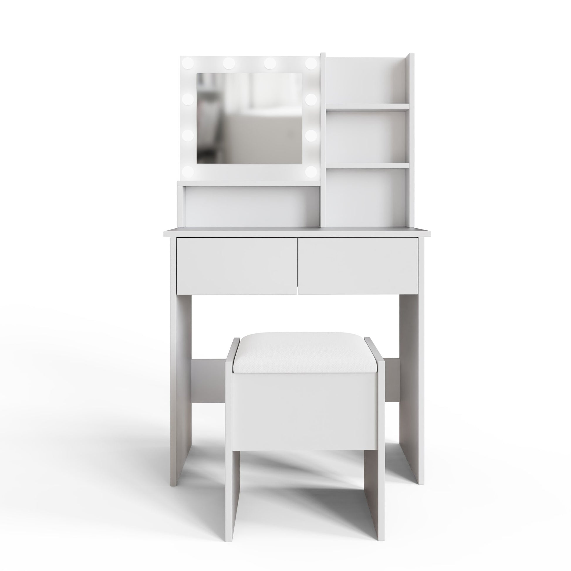 Eva Tall Dressing Table Set White 2 Shelves 2 Drawers