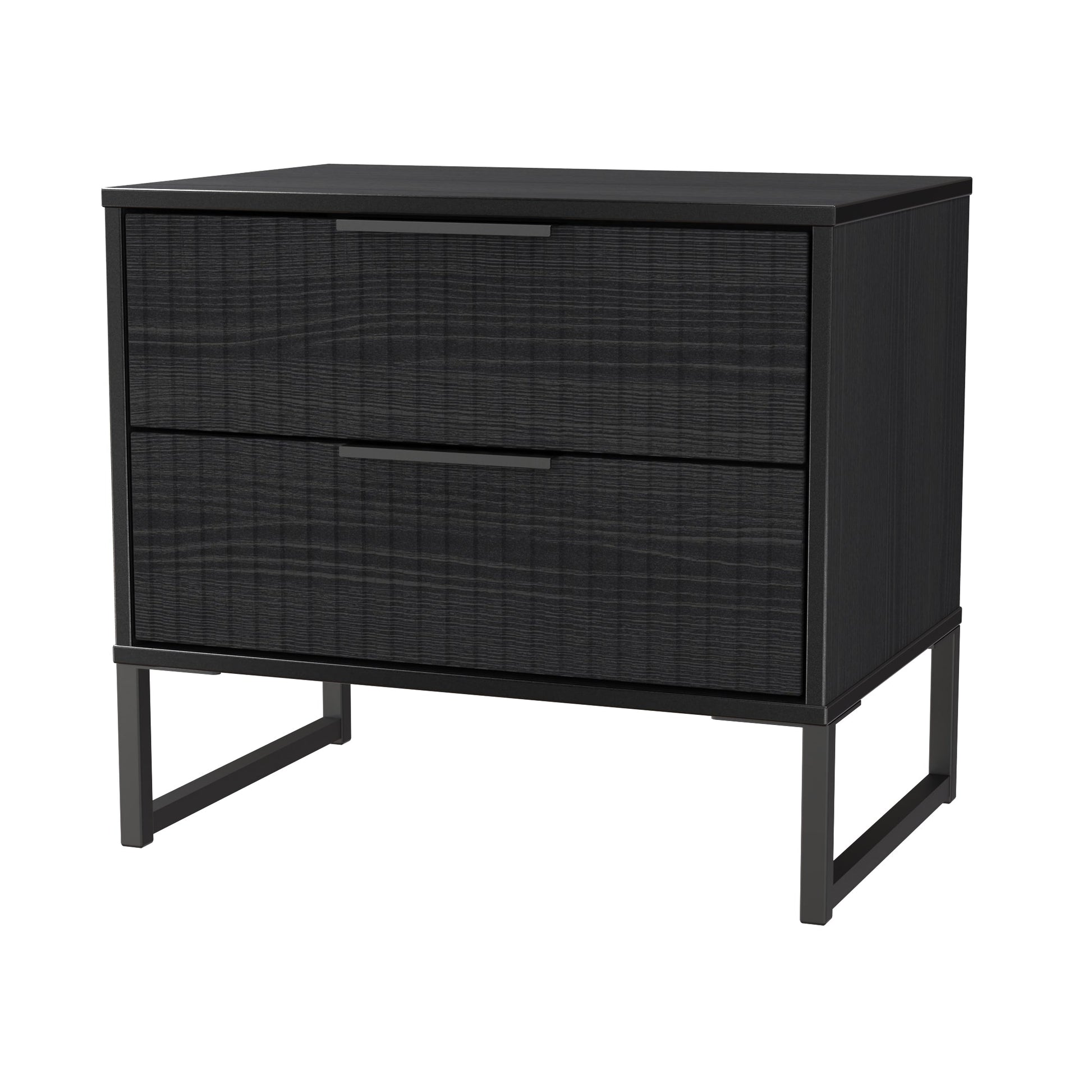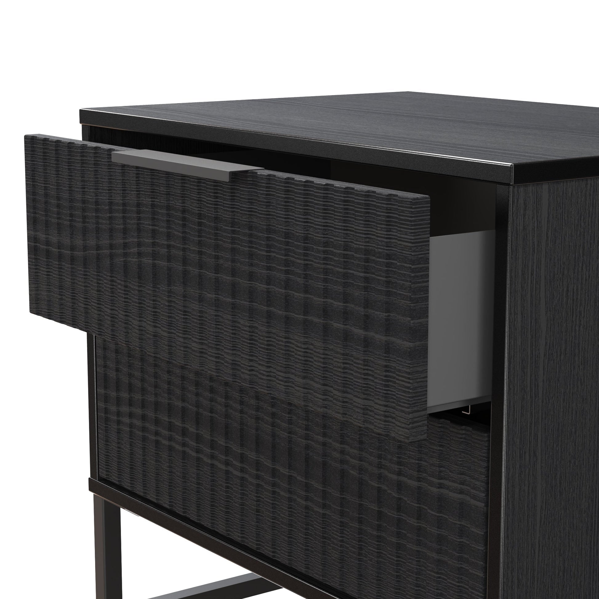 This 2 drawer bedside cabinet is wider than normal for added practicality. Perfect for any bedside or as a free standing storage unit. A new stand out range, with its new deep cut "fluted" grove patten of the drawer and door fronts. Featuring black metal handles and black sleigh legs. A striking and individual range that is perfect for the modern home. All our furniture is made to order in the United Kingdom, to the highest quality using responsibly sourced materials. It is delivered within 10 working days direct to your location of choice by one of our two man delivery teams, and comes fully assembled (although items with legs will have those legs removed during transit to avoid damage). Part of the Fluted Collection.