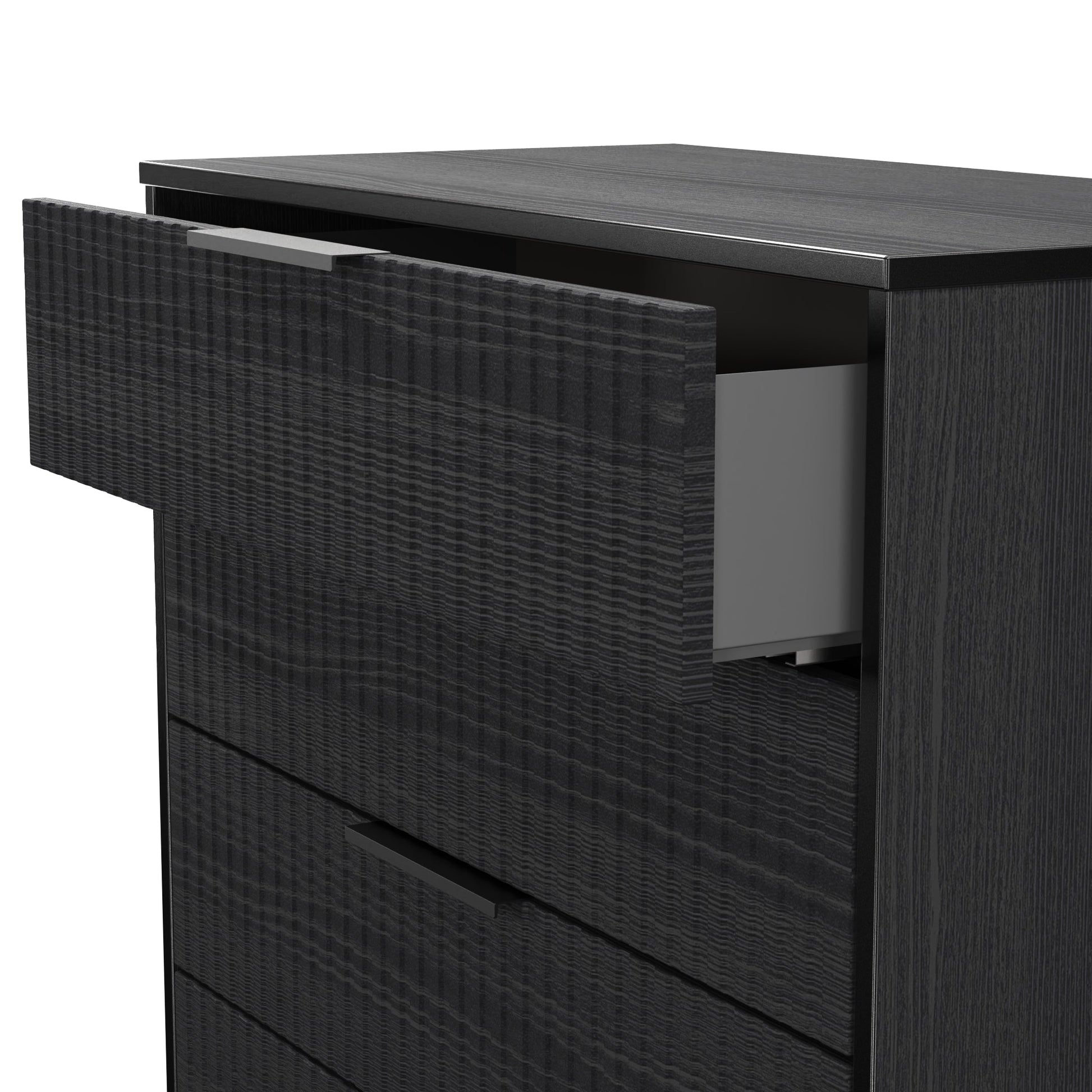 Fluted Chest of Drawers Black 4 Drawers 93cm