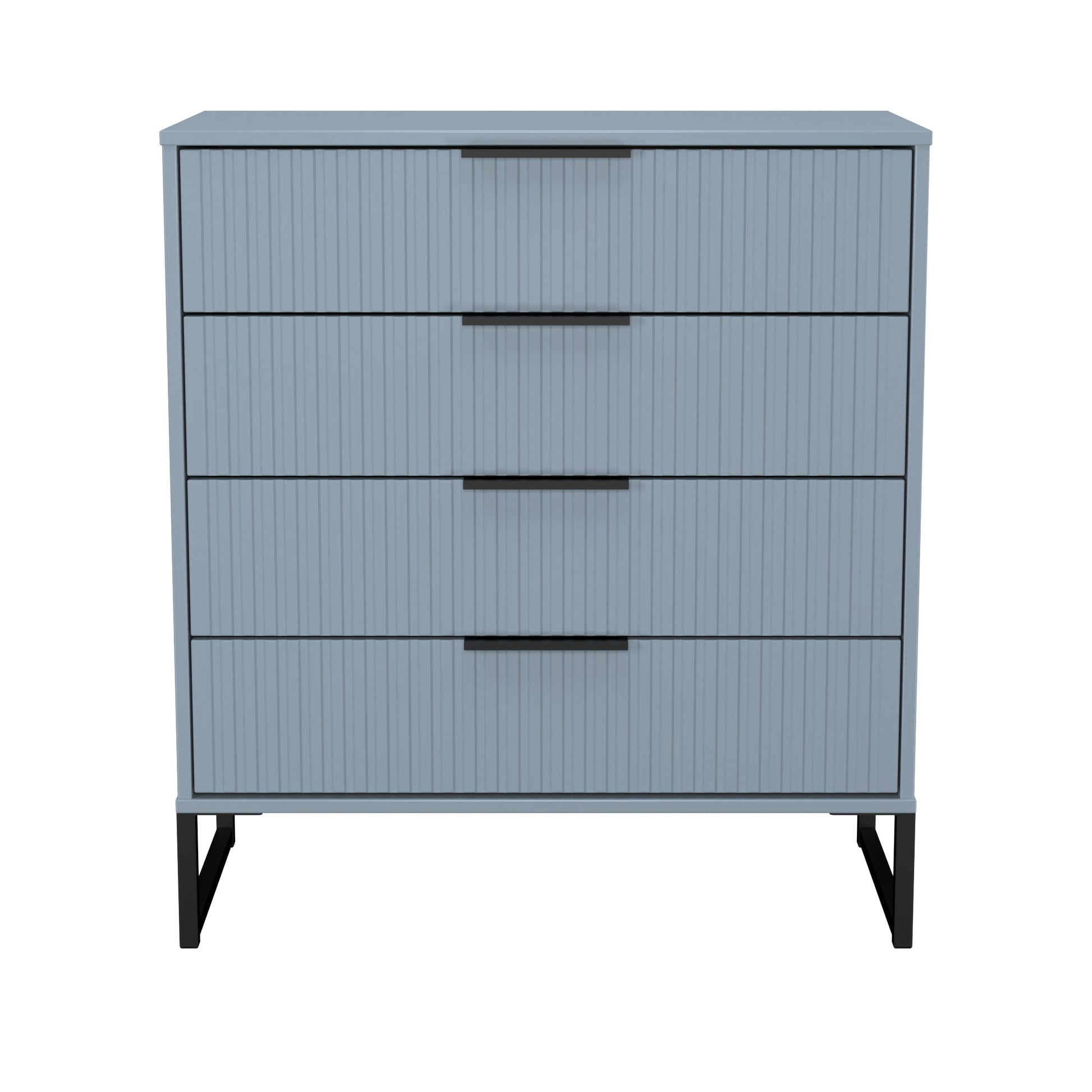 Fluted Chest of Drawers Light Blue 4 Drawers 93cm