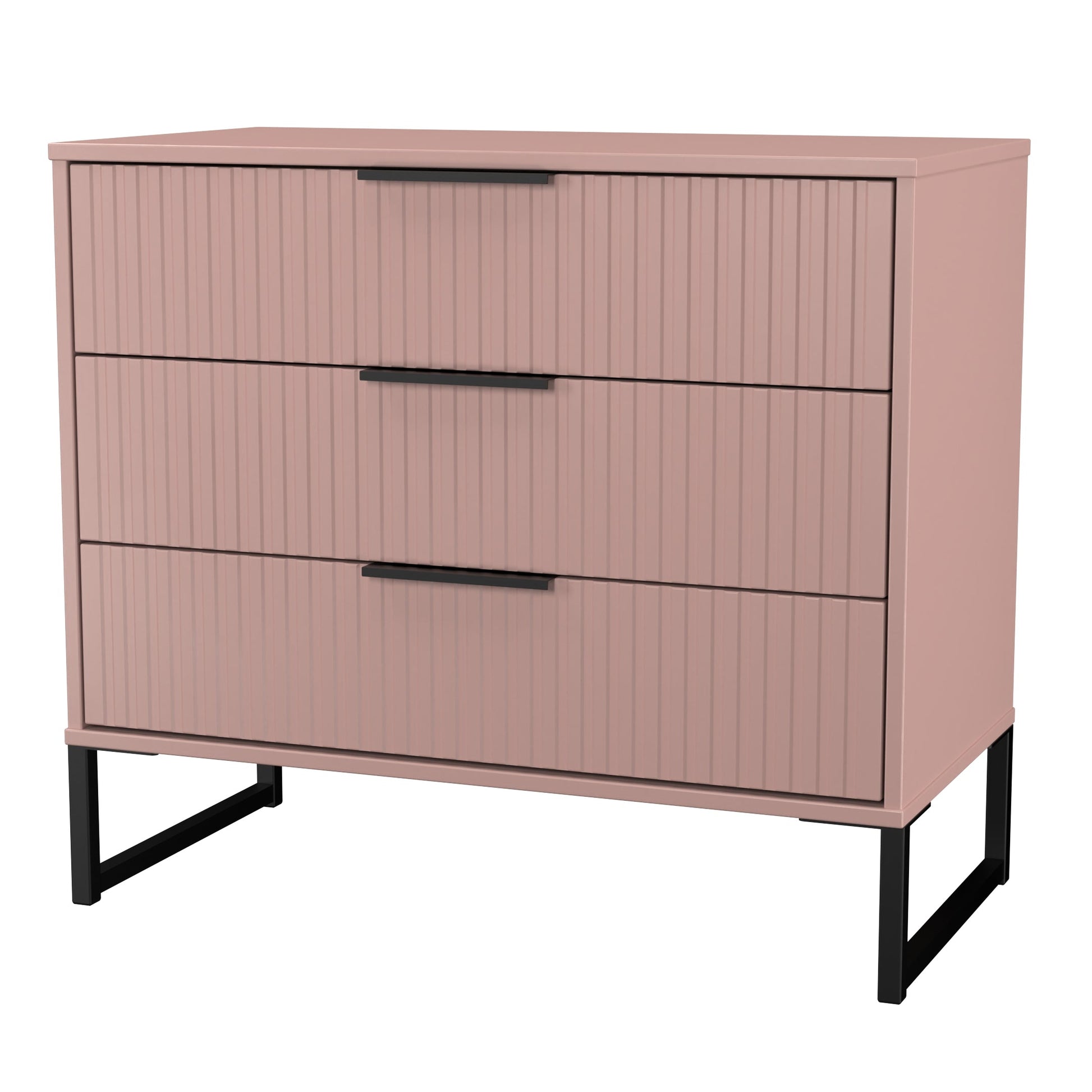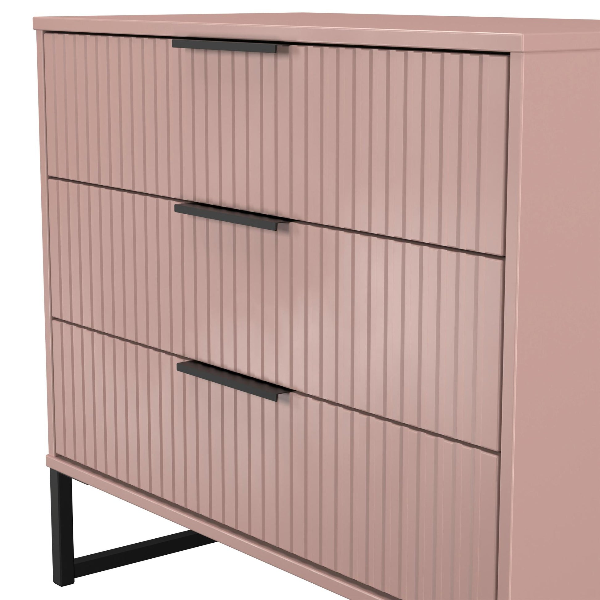 Fluted Chest of Drawers Pink 3 Drawers 77cm