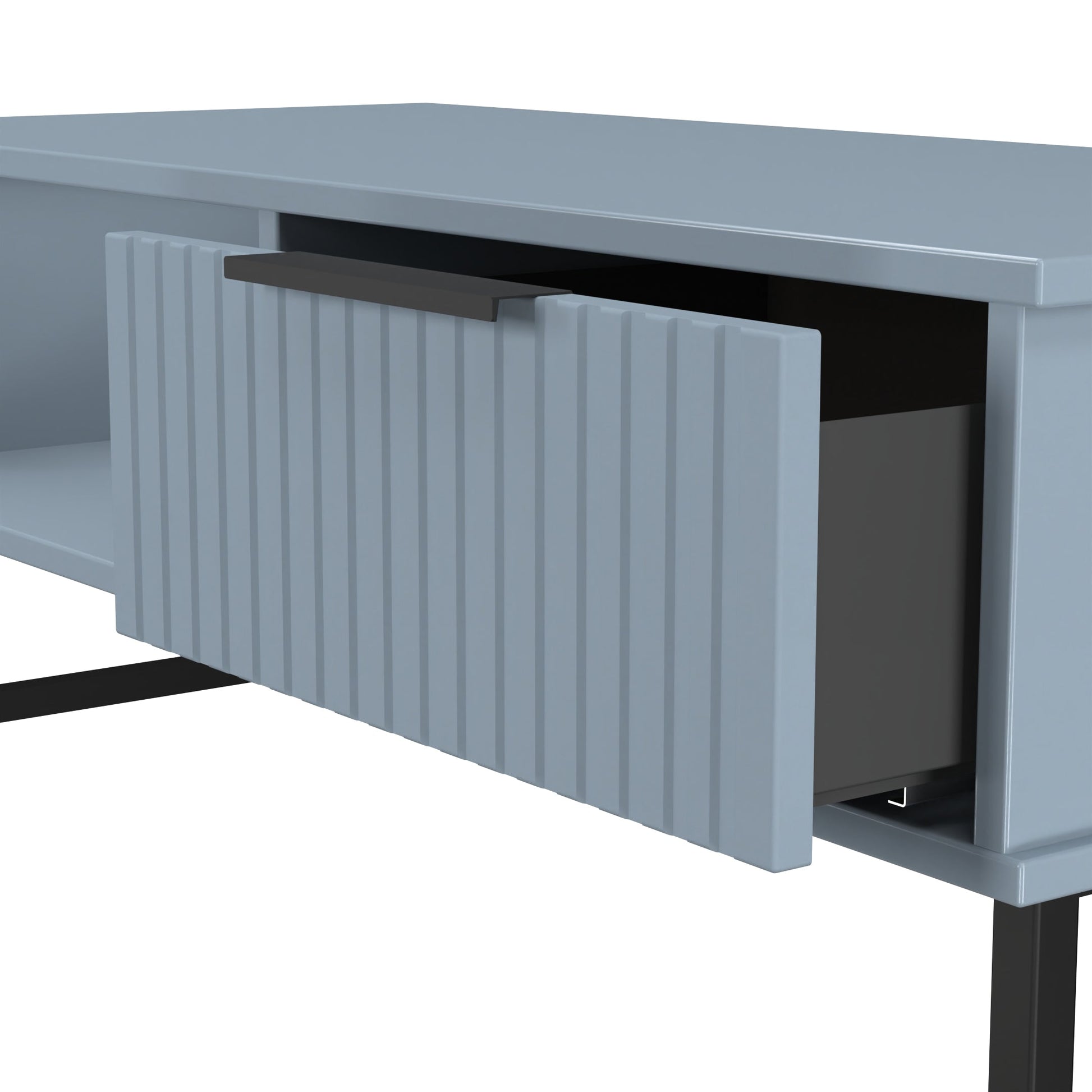 Fluted Coffee Table Light Blue 1 Shelf 1 Drawer 92cm