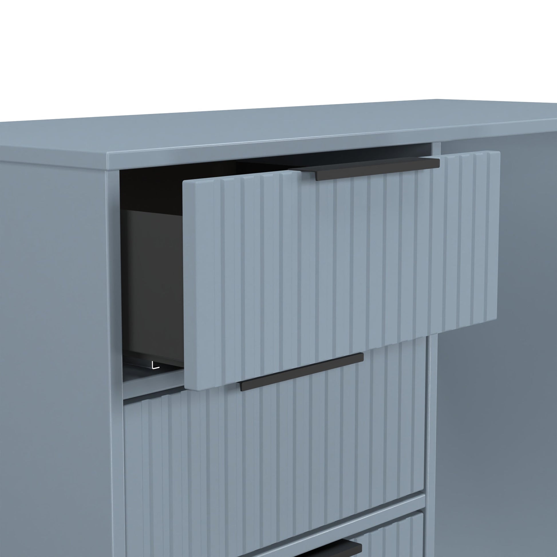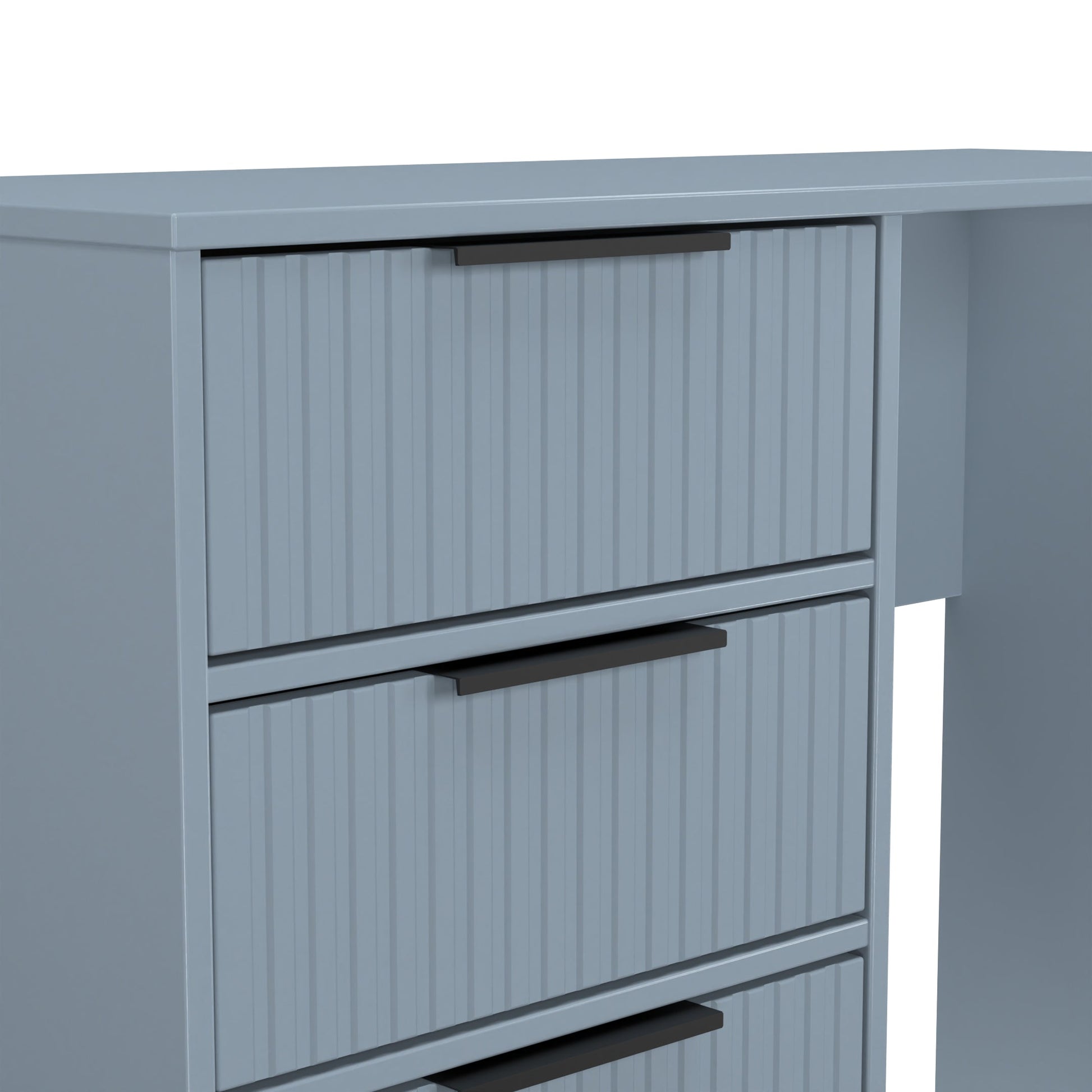 This 4 Drawer Vanity/Desk is equally at home in the bedroom or the office. A new stand out range, with its new deep cut "fluted" grove patten of the drawer and door fronts. Featuring black metal handles and black sleigh legs. A striking and individual range that is perfect for the modern home. All our furniture is made to order in the United Kingdom, to the highest quality using responsibly sourced materials. It is delivered within 10 working days direct to your location of choice by one of our two man delivery teams, and comes fully assembled (although items with legs will have those legs removed during transit to avoid damage). Part of the Fluted Collection.