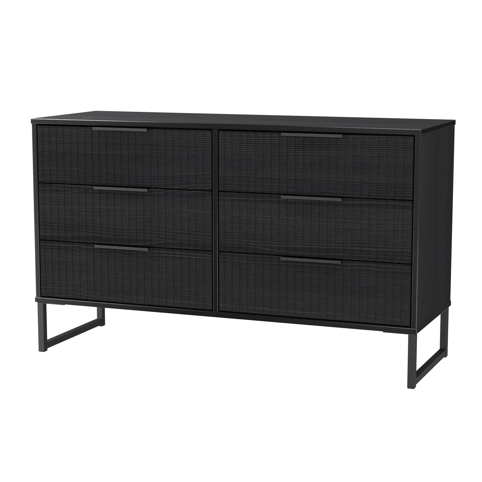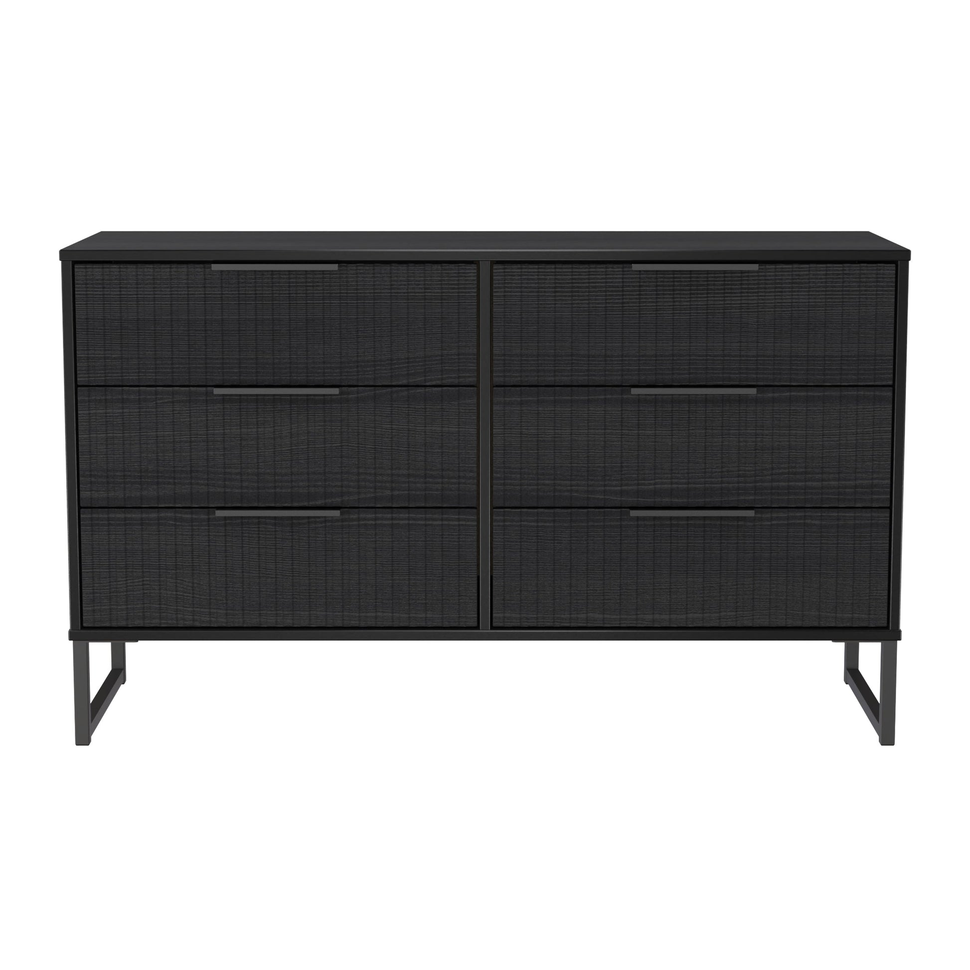 This double width 6 drawer chest of drawers is practical and stylish. Perfect for any home as a free standing storage unit. A new stand out range, with its new deep cut "fluted" grove patten of the drawer and door fronts. Featuring black metal handles and black sleigh legs. A striking and individual range that is perfect for the modern home. All our furniture is made to order in the United Kingdom, to the highest quality using responsibly sourced materials. It is delivered within 10 working days direct to your location of choice by one of our two man delivery teams, and comes fully assembled (although items with legs will have those legs removed during transit to avoid damage). Part of the Fluted Collection.