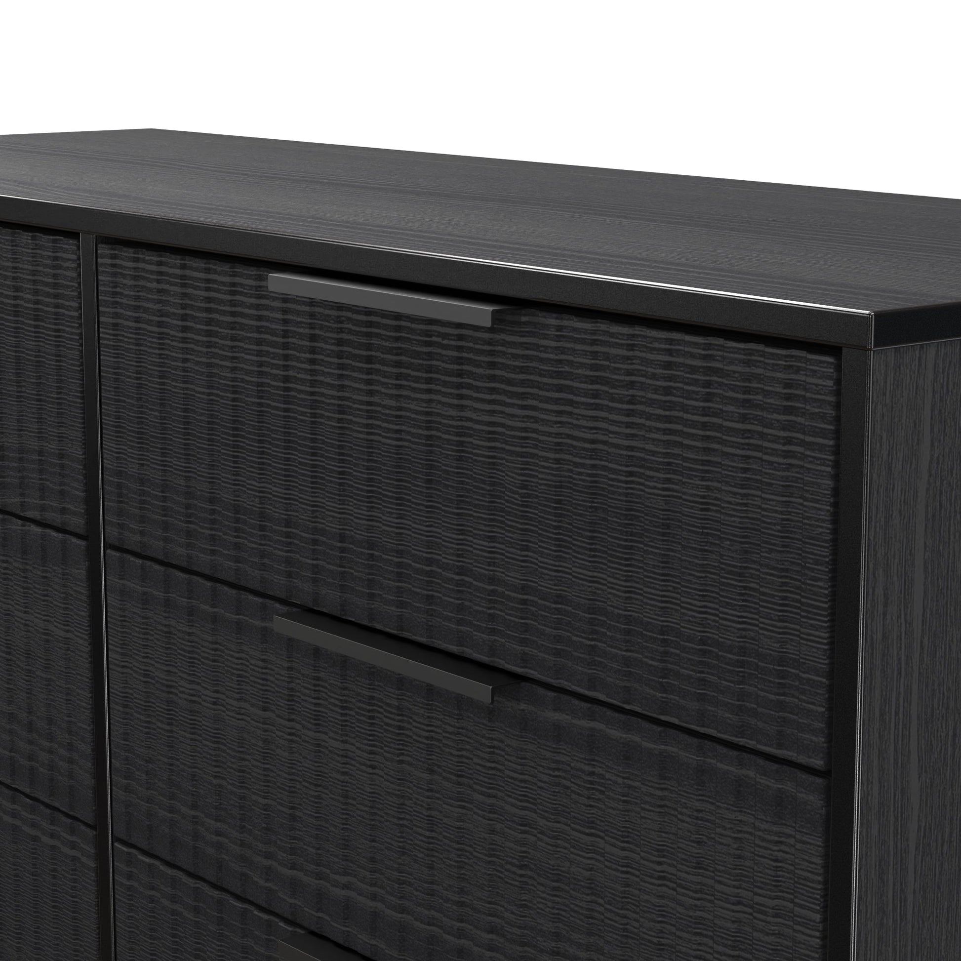 Fluted Large Chest of Drawers Black 6 Drawers 115cm