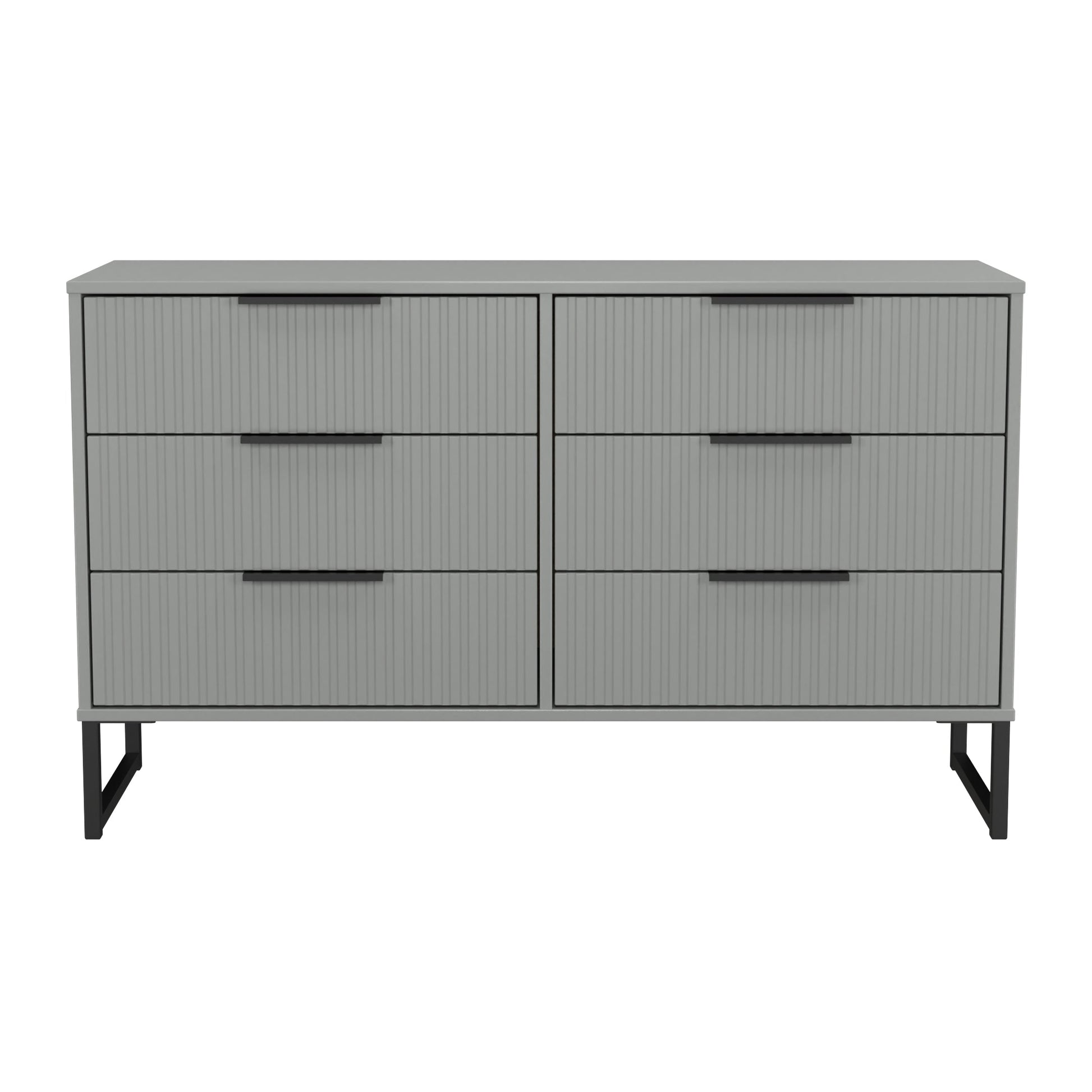 Fluted Large Chest of Drawers Grey 6 Drawers 115cm