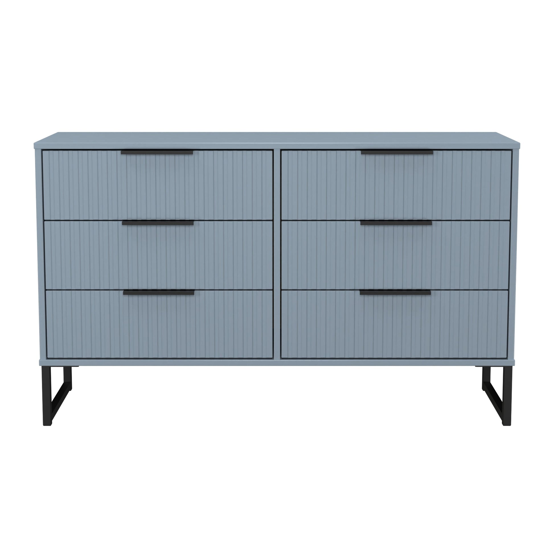 Fluted Large Chest of Drawers Light Blue 6 Drawers 115cm