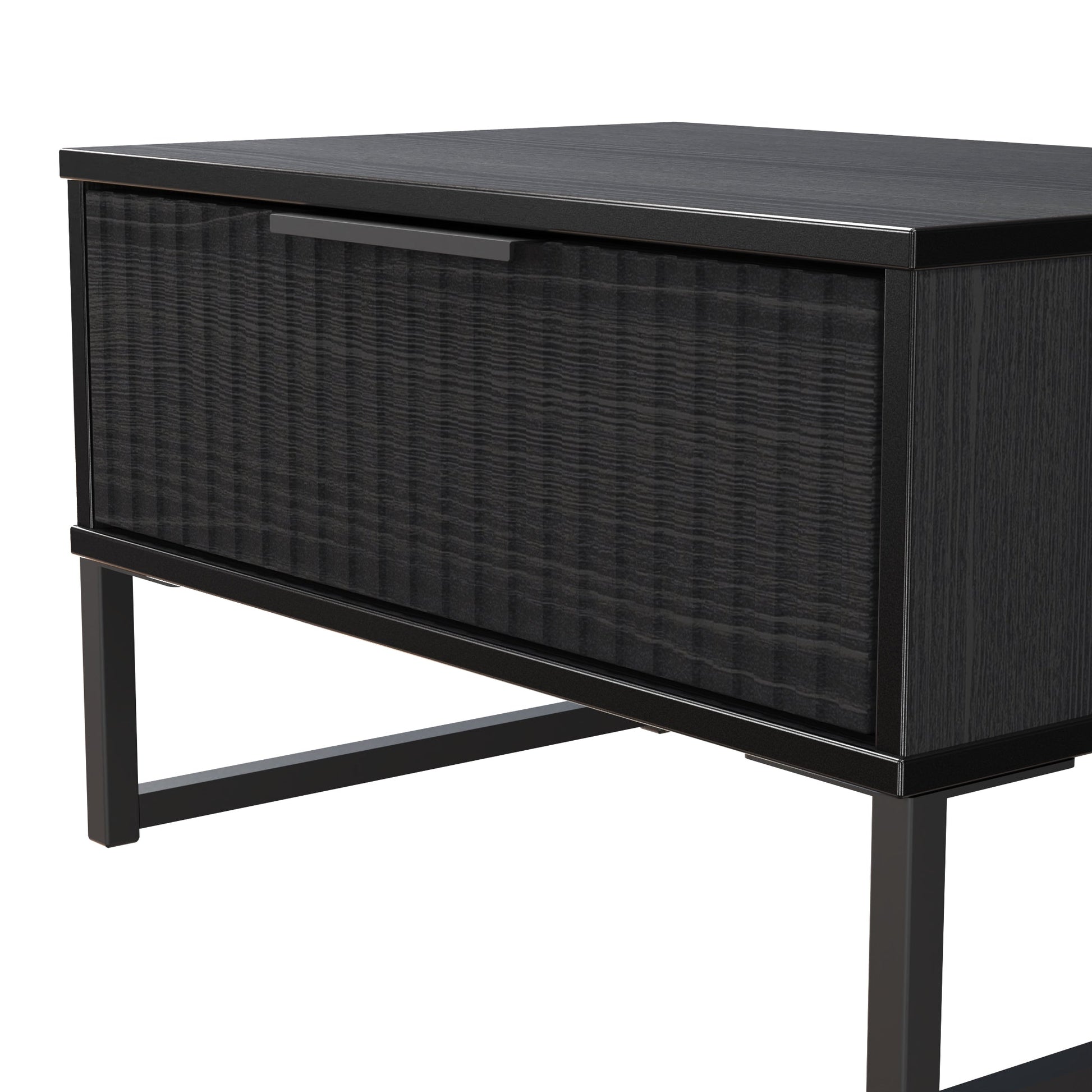 This single drawer bedside cabinet is wider than normal for added practicality. Perfect for any bedside or as a free standing storage unit. A new stand out range, with its new deep cut "fluted" grove patten of the drawer and door fronts. Featuring black metal handles and black sleigh legs. A striking and individual range that is perfect for the modern home. All our furniture is made to order in the United Kingdom, to the highest quality using responsibly sourced materials. It is delivered within 10 working days direct to your location of choice by one of our two man delivery teams, and comes fully assembled (although items with legs will have those legs removed during transit to avoid damage). Part of the Fluted Collection.
