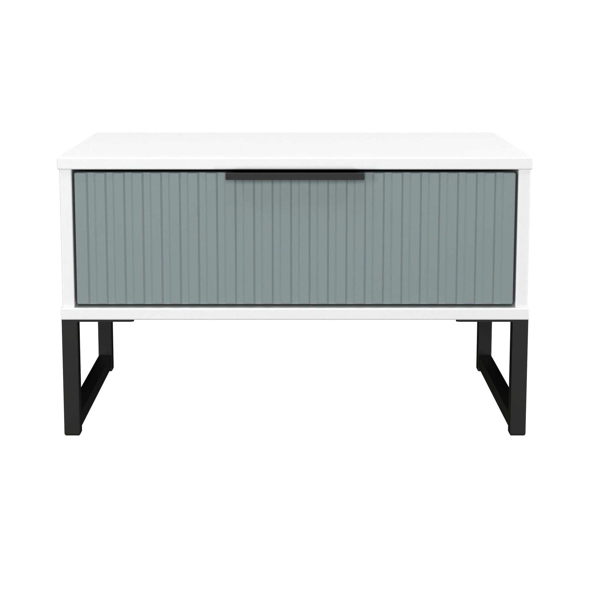 Fluted Side Table Teal & White 1 Drawer 58cm