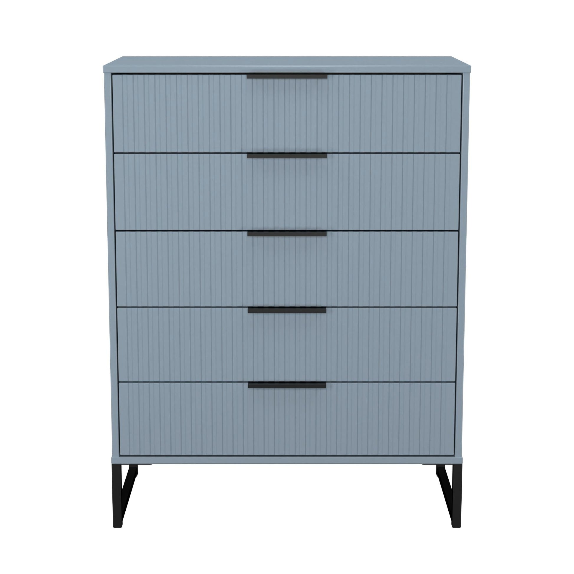 Fluted Tall Chest of Drawers Light Blue 5 Drawers 109cm