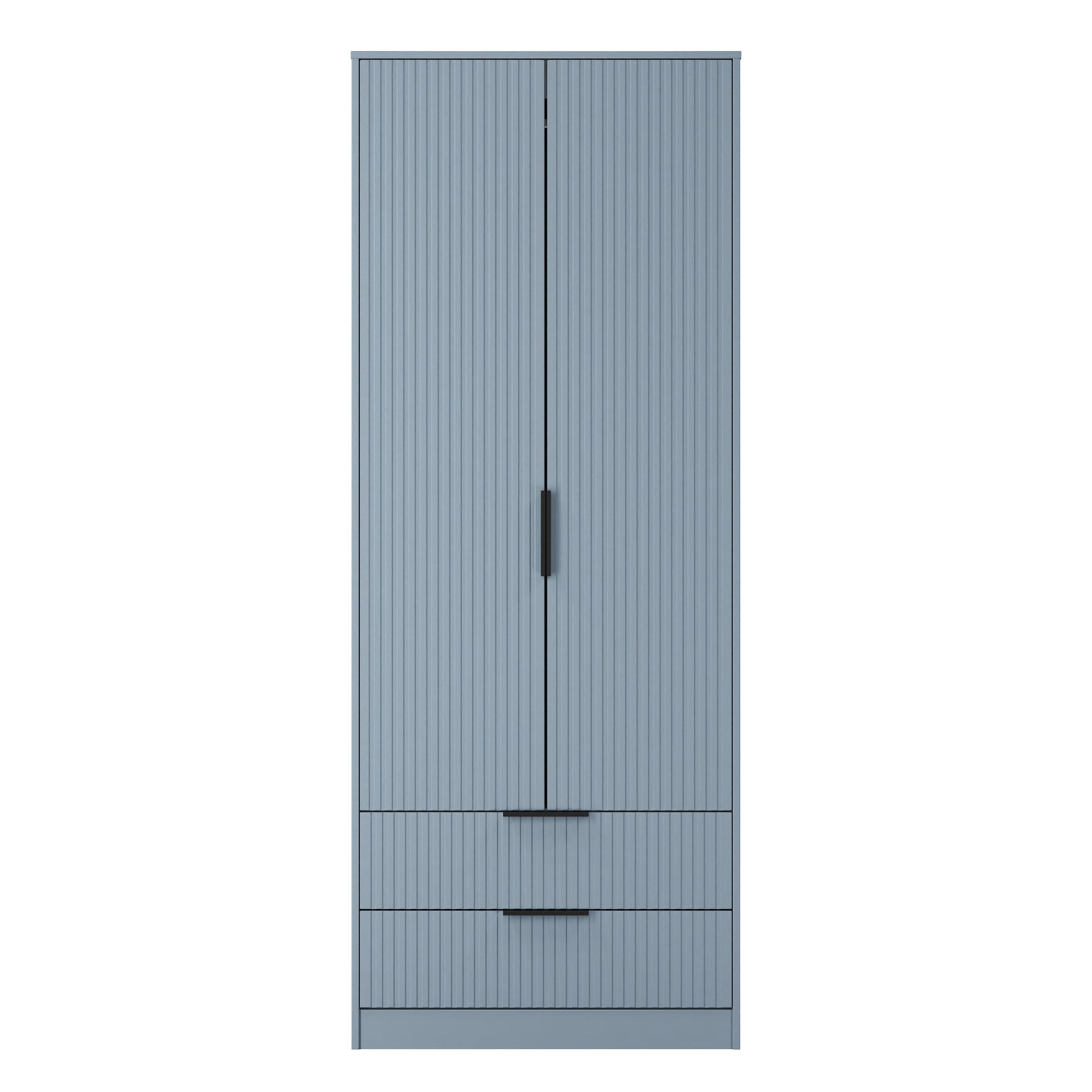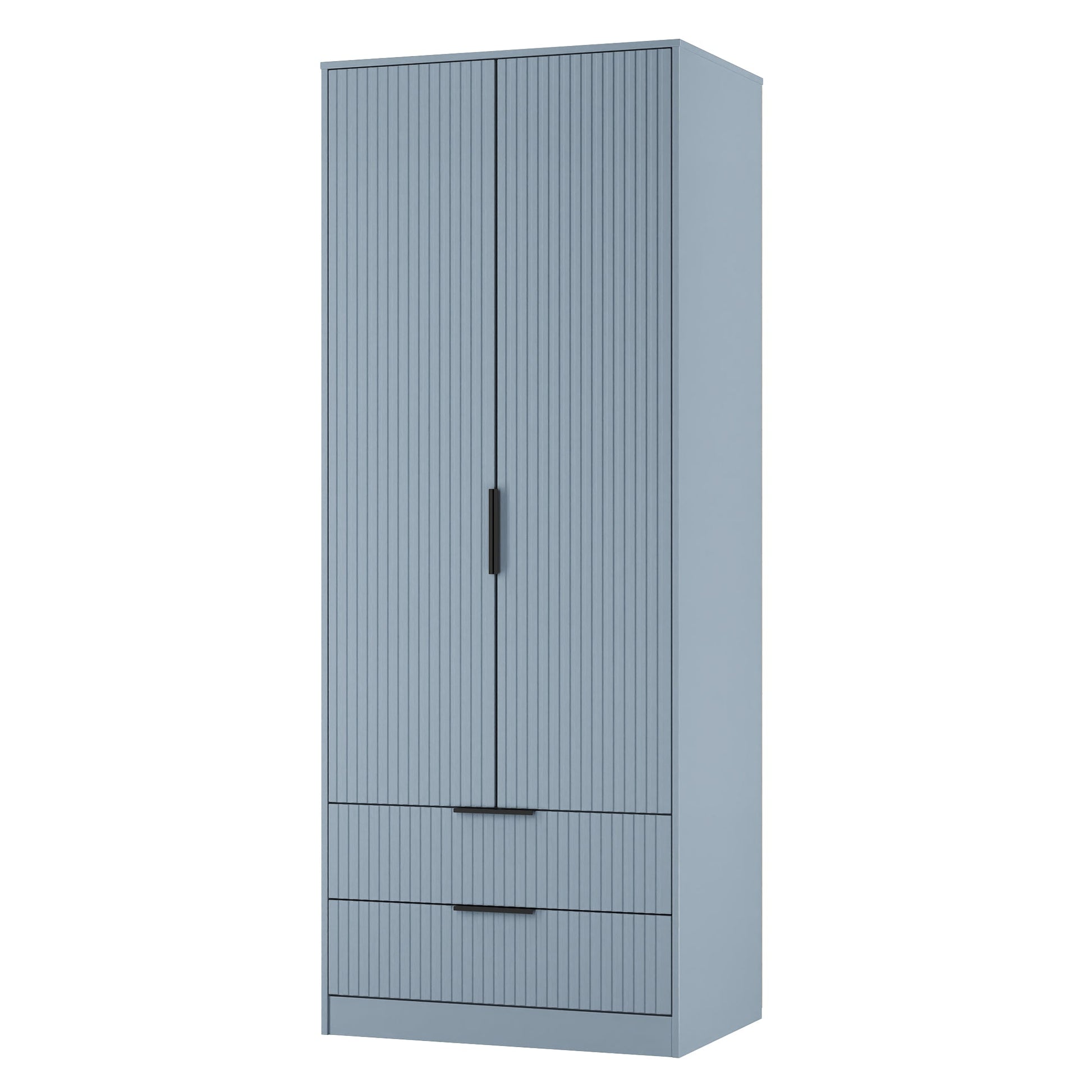 Fluted Tall Wardrobe Light Blue 2 Drawers 197cm