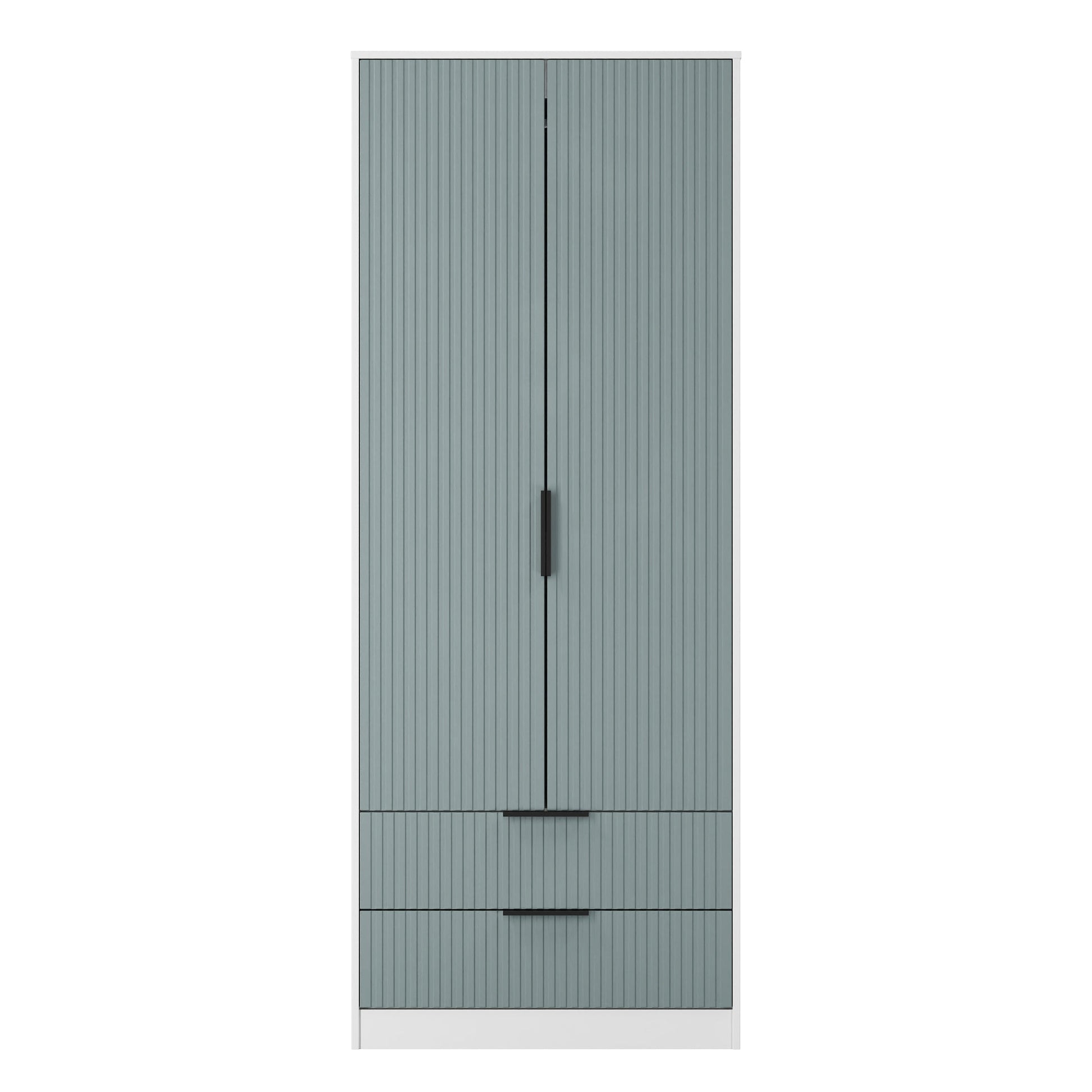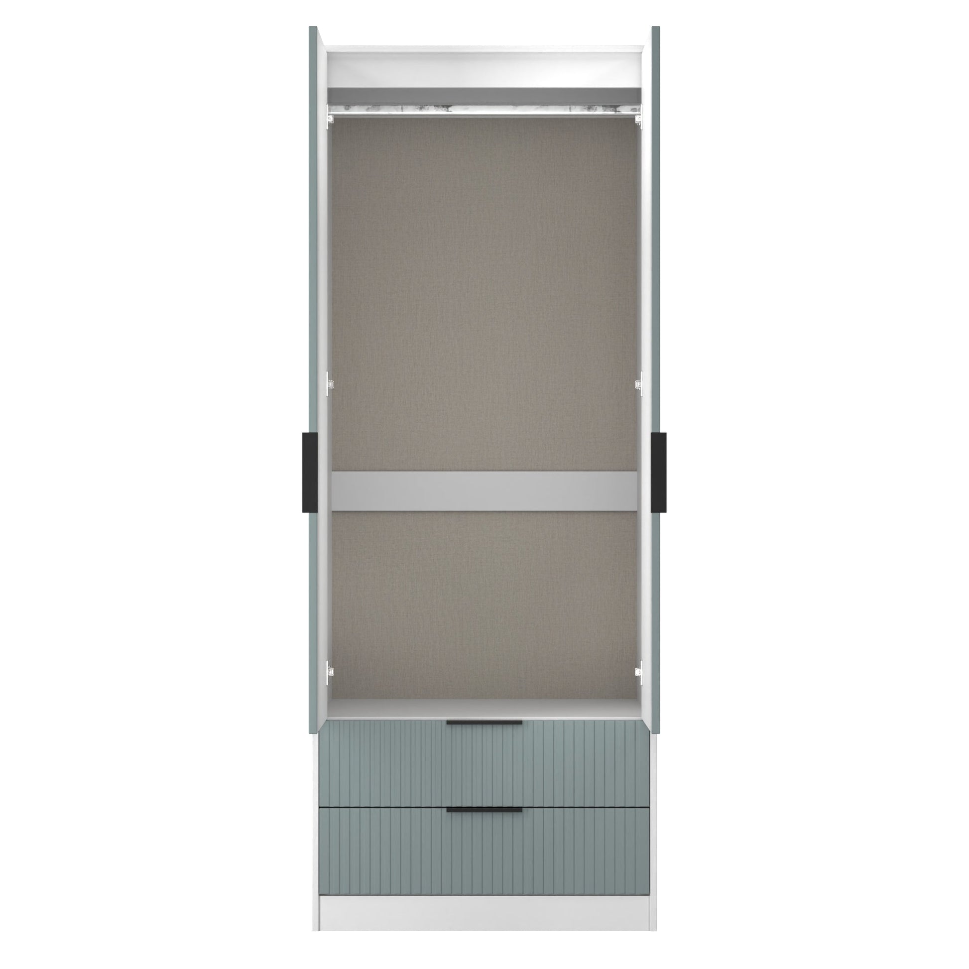 Fluted Tall Wardrobe Teal & White 2 Drawers 197cm