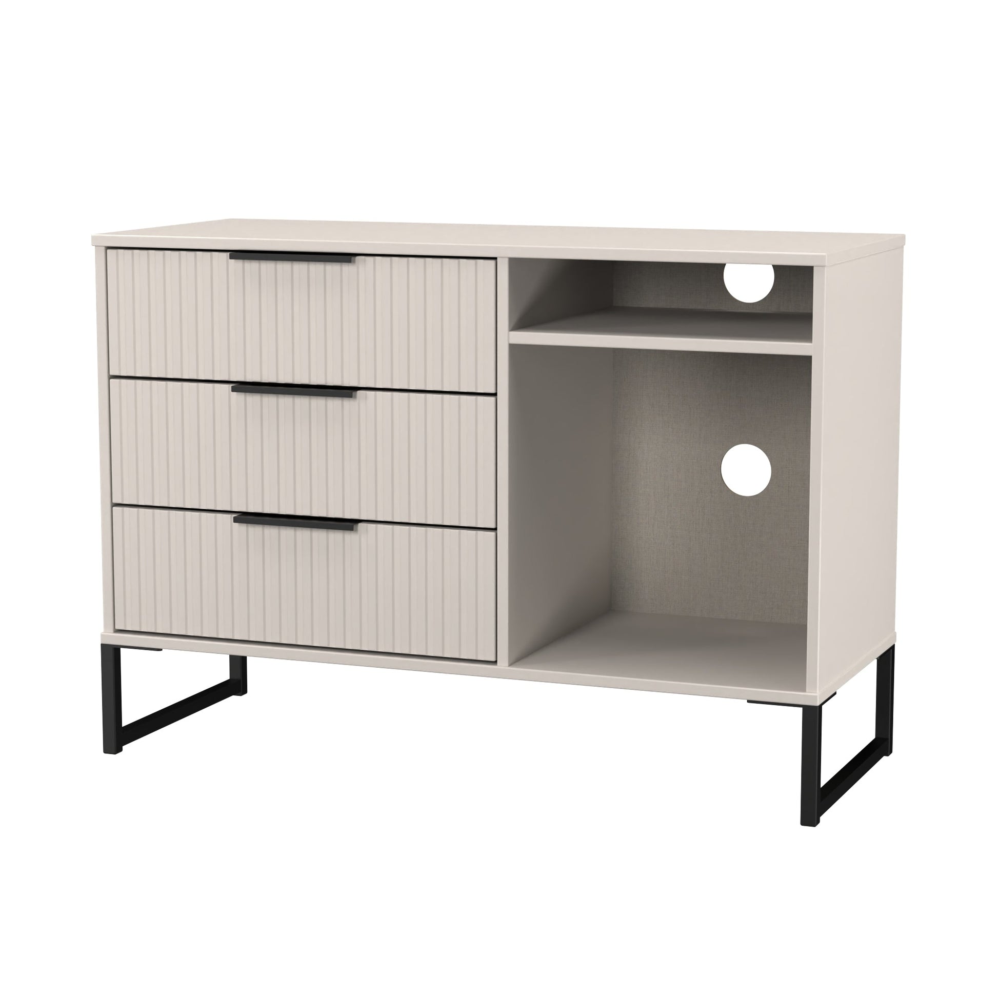 Fluted TV Unit Off-White 2 Shelves 3 Drawers 97cm