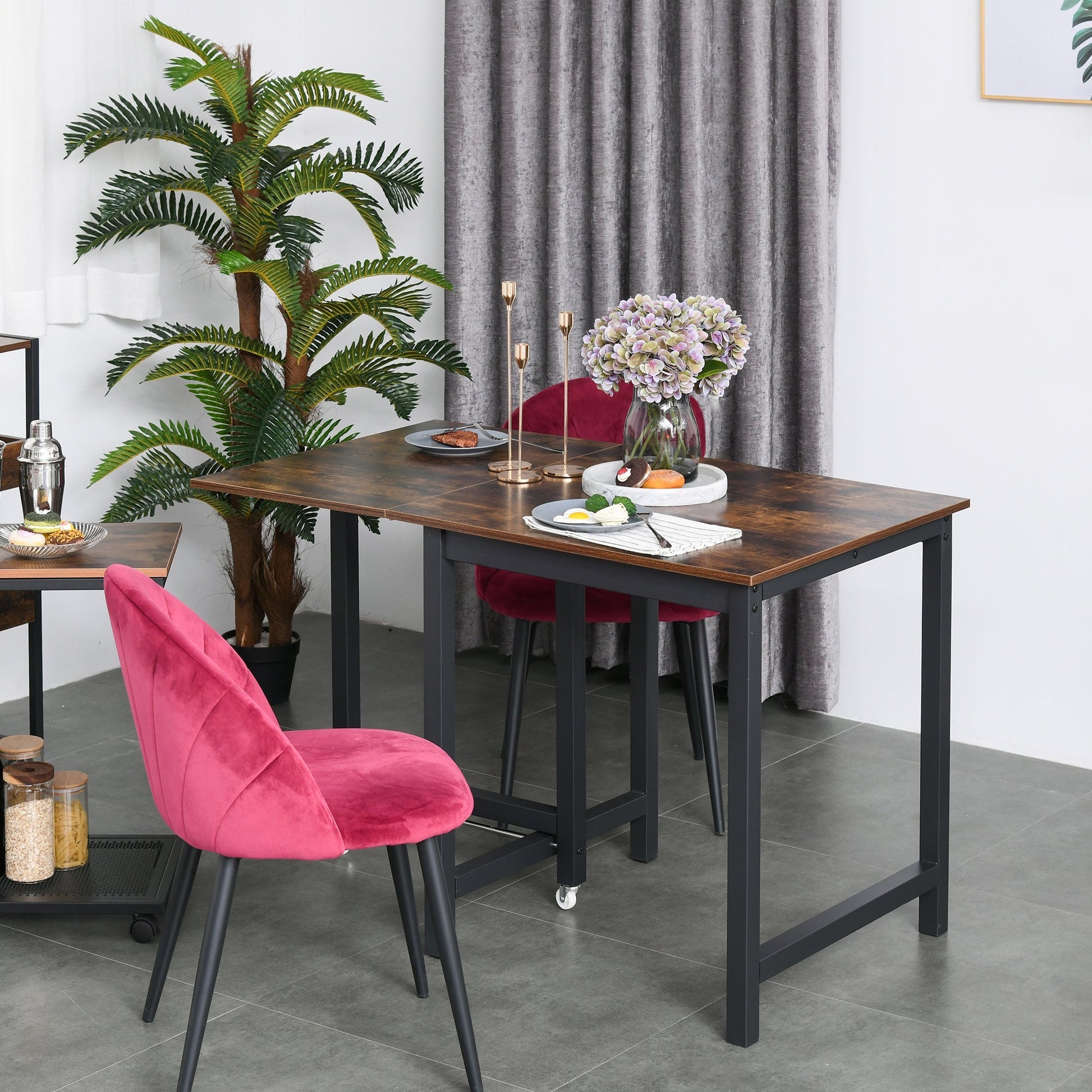 Create more space the industrial way with this HOMCOM folding table. Easy-to-use, the drop leaf design extends dining space quickly, thanks to the smooth movement and wheels on the feet. Can be used for a variety of purposes: a dining table, writing desk, or as an everyday dressing table. The sleek wood grain effect top is smoothly veneered, supported by a sturdy metal frame, giving you reliable use every time.