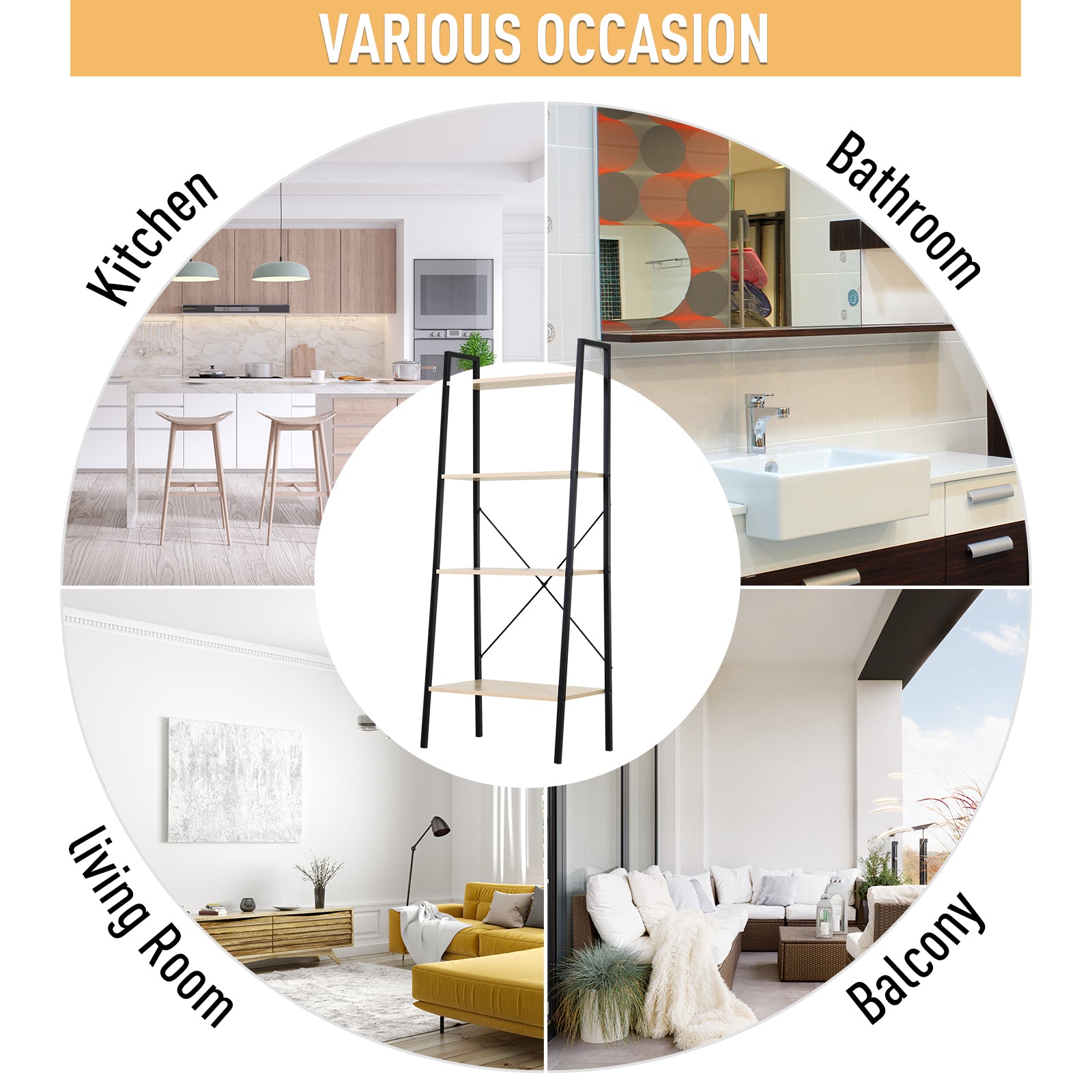 Let minimalistic design allow your pieces to take centre stage with this ladder shelving unit from HOMCOM. With a steel frame to ensure a tough standing structure, it is crafted into a four-tier design, where the wide shelves are spaced far apart for plenty of display room. The shelves are made from thick MDF with a melamine coating, making the surfaces smooth, even and easy to clean and this unit is finished with caps on the feet to protect the floor from marks. An easy way to bring some subtle character into your home.