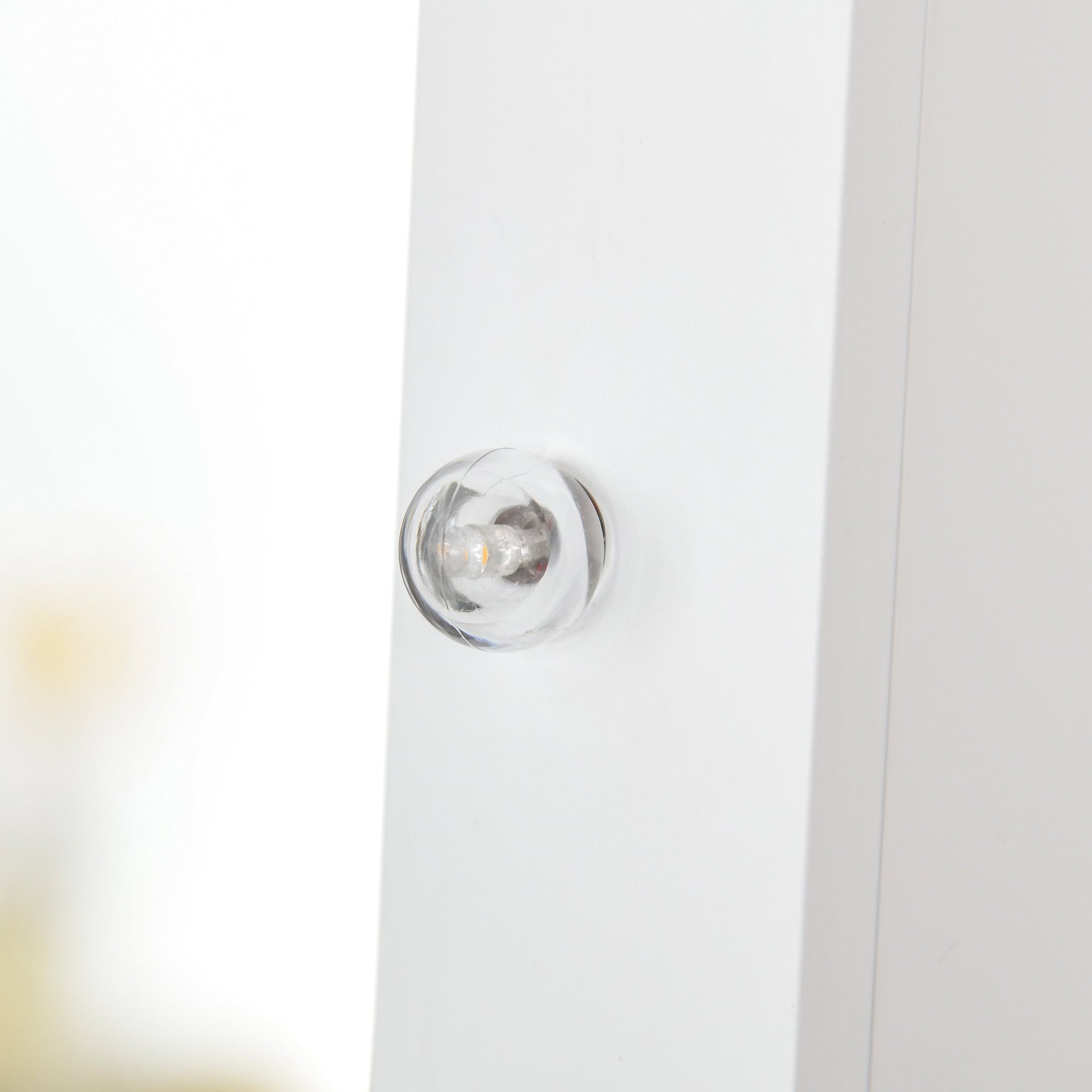 Free Standing LED Mirrored Jewelry Cabinet Armoire Floor Organiser W/ 3 Angle Adjustable For Rings Earrings Bracelets Cosmetics Warm White