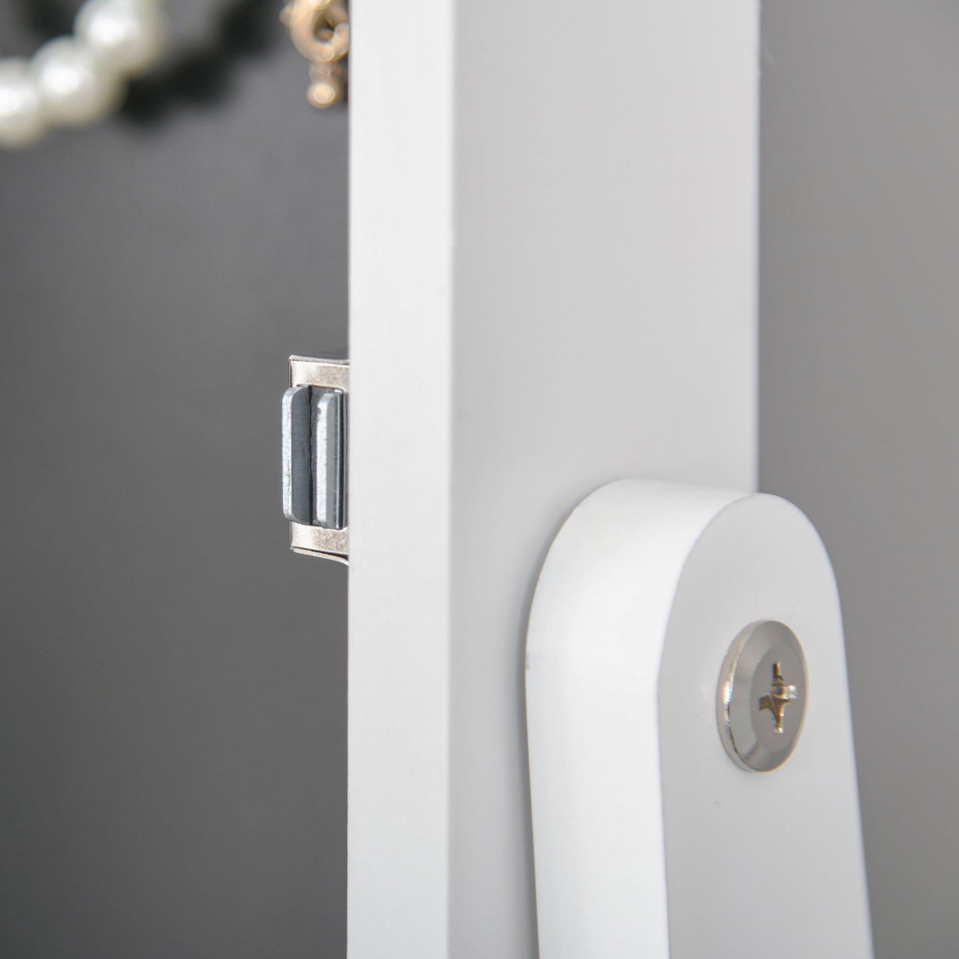 This floor standing jewellery cabinet from HOMCOM is perfect for keeping all your make-up, jewellery and other accessories together in a place. On the outside is a full-length mirror with battery powered LED lights that create a soft and flattering glow, and on the inside is a fully-lined interior that can house up to 32 pairs of earrings, 70 rings, 12 hooks and three shelves. Made from sturdy MDF board, the mirror can be adjusted to three different levels to suit your preferences. Clean, stylish and contemporary, this organiser is a beautiful addition to any style surrounding.