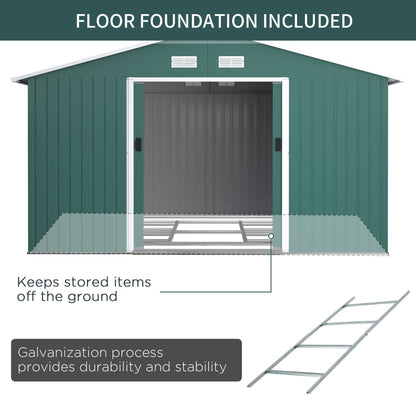 Galvanised 12.5 x 11' Sliding Double Door Apex Garden Shed Steel Green by Steadfast