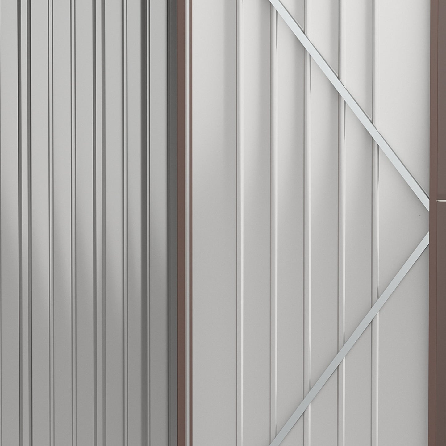 Add storage space to your outdoor areas, instantly: welcome this Outsunny 3.1 x 5.2ft shed into your home. Made from galvanised steel, in a corrugated finish, the metal forms a strong shell to protect whatever you have inside. It's completely open inside, so you can store plenty - or even add your own shelving for organisation. A single door for access, fitted with a latch to keep it shut in place.