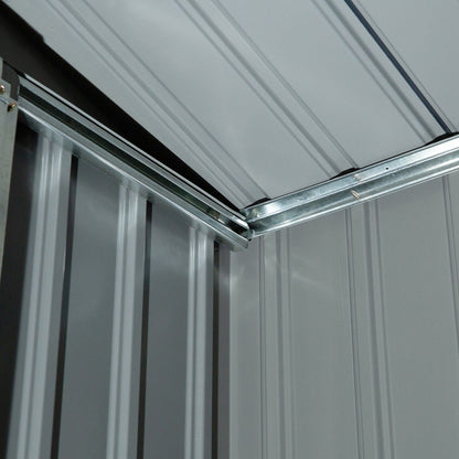 Keep your garden equipment and outdoor essentials locked away securely with this metal shed with floor from Outsunny. Built from galvanised steel for enduring reliability, it is made with a lockable double sliding door on the front for easy access, four vents for air to circulate and prevent moisture build up. The garden tool shed is finished with a protective weather coating and a floor foundation for it to stand level on the ground. The perfect outdoor sheds and garden buildings.
