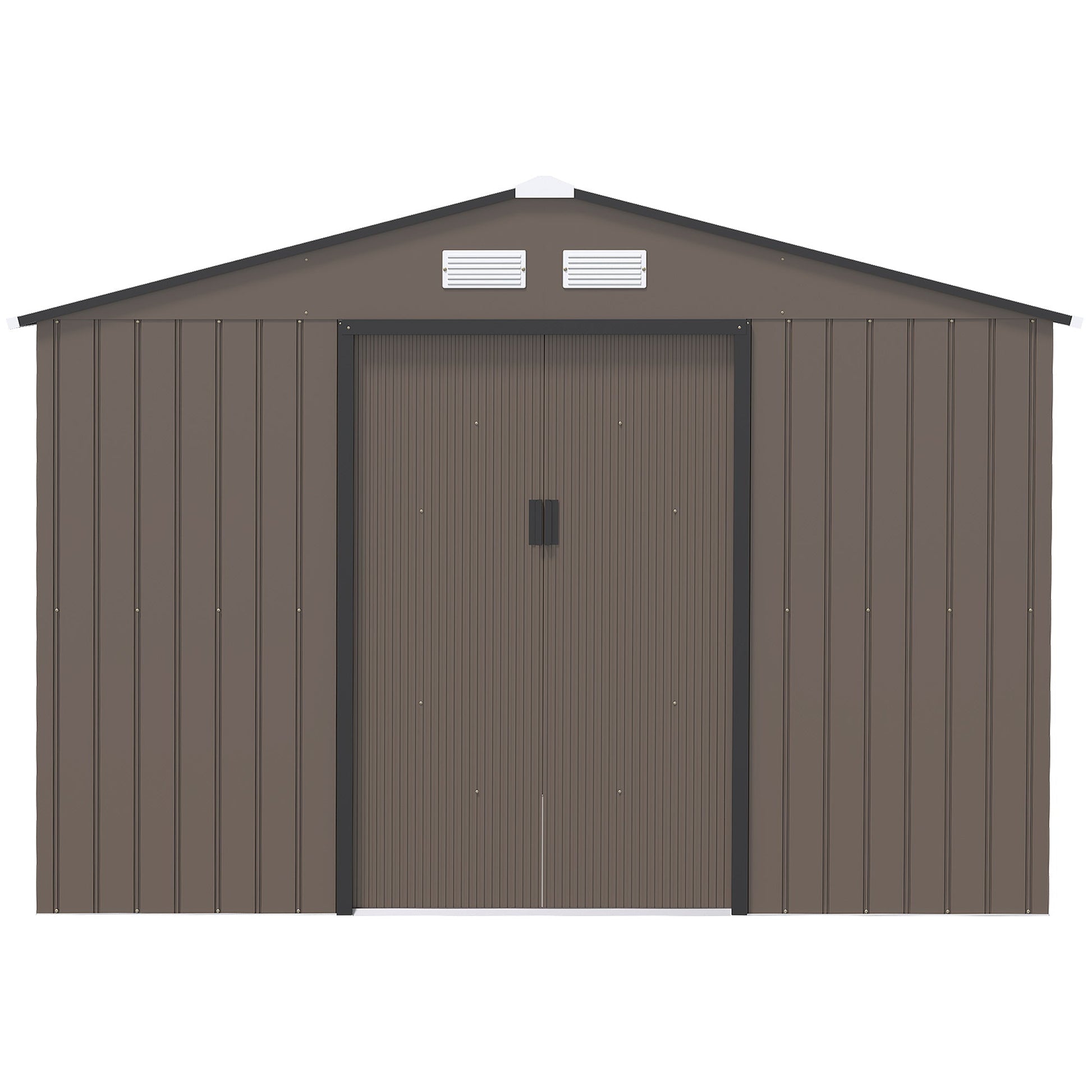 Galvanised 9 x 6' Double Door Reverse Apex Garden Shed With Ventilation Steel Brown by Steadfast