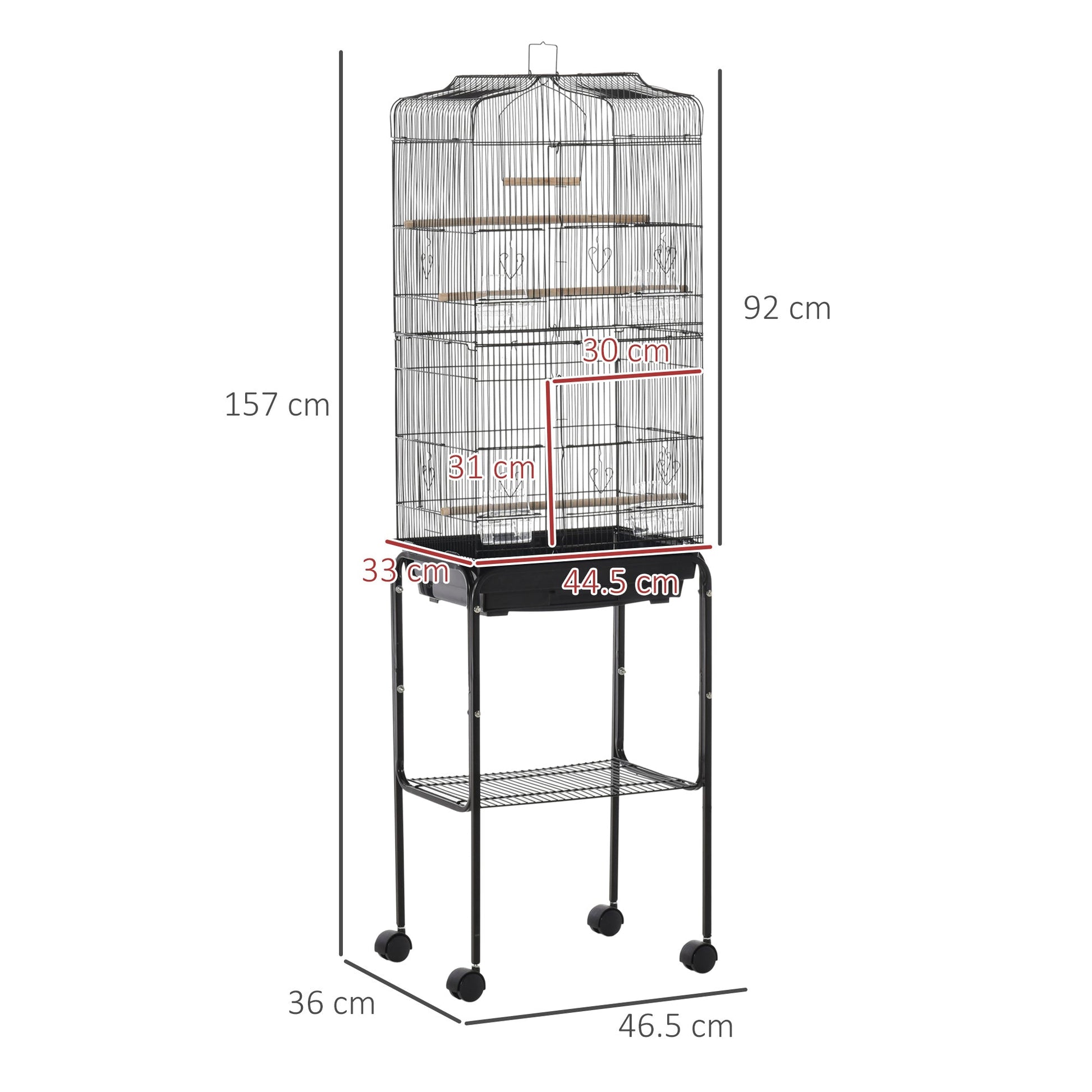 Give your bird this cage they'll love from PawHut. Made from powder-coated metal with four wheels for easy movement, it is crafted into a spacious design that gives your pet plenty of room to move about, along with three wooden perches, one wooden swing and four plastic food containers. Two oversized doors are fitted on the front with sliding food doors to provide you easy access inside the cage with minimal disruption, and it is finished with a slide-out tray on the bottom for easy cleaning.