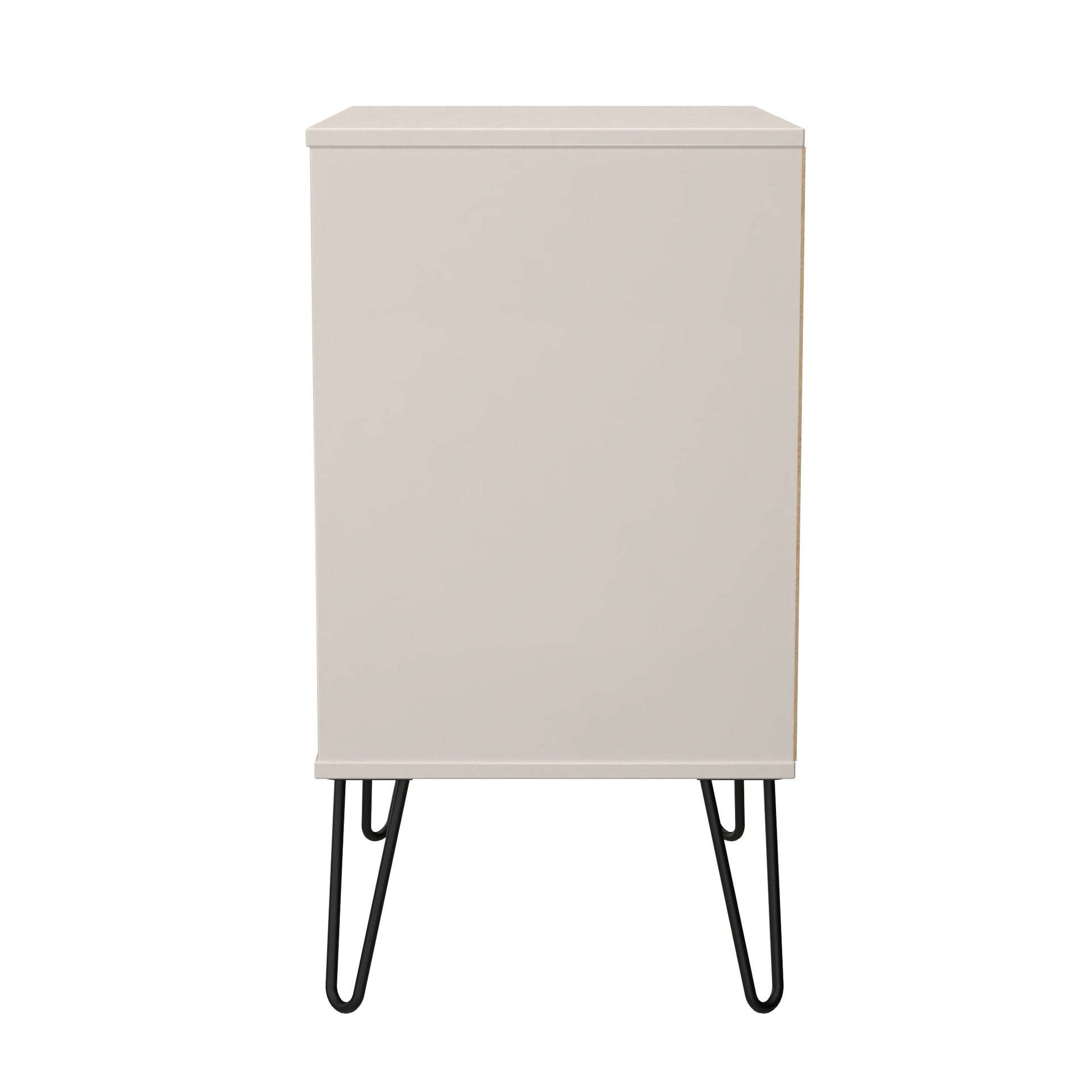 This 3 drawer bedside cabinet is wider than normal for added practicality. Perfect for any bedside or as a free standing storage unit. A modern and distinctive range. This ranges unique aesthetic is best represented by the distinctive "Harlequin" patten of the drawer and door fronts. Also features Black Metal Handles and Black Hairpin Legs. Comes in a wide range of colours including eye cathching two tone colour combinations. All our furniture is made to order in the United Kingdom, to the highest quality using responsibly sourced materials. It is delivered within 10 working days direct to your location of choice by one of our two man delivery teams, and comes fully assembled (although items with legs will have those legs removed during transit to avoid damage). Part of the Harlequin Collection.
