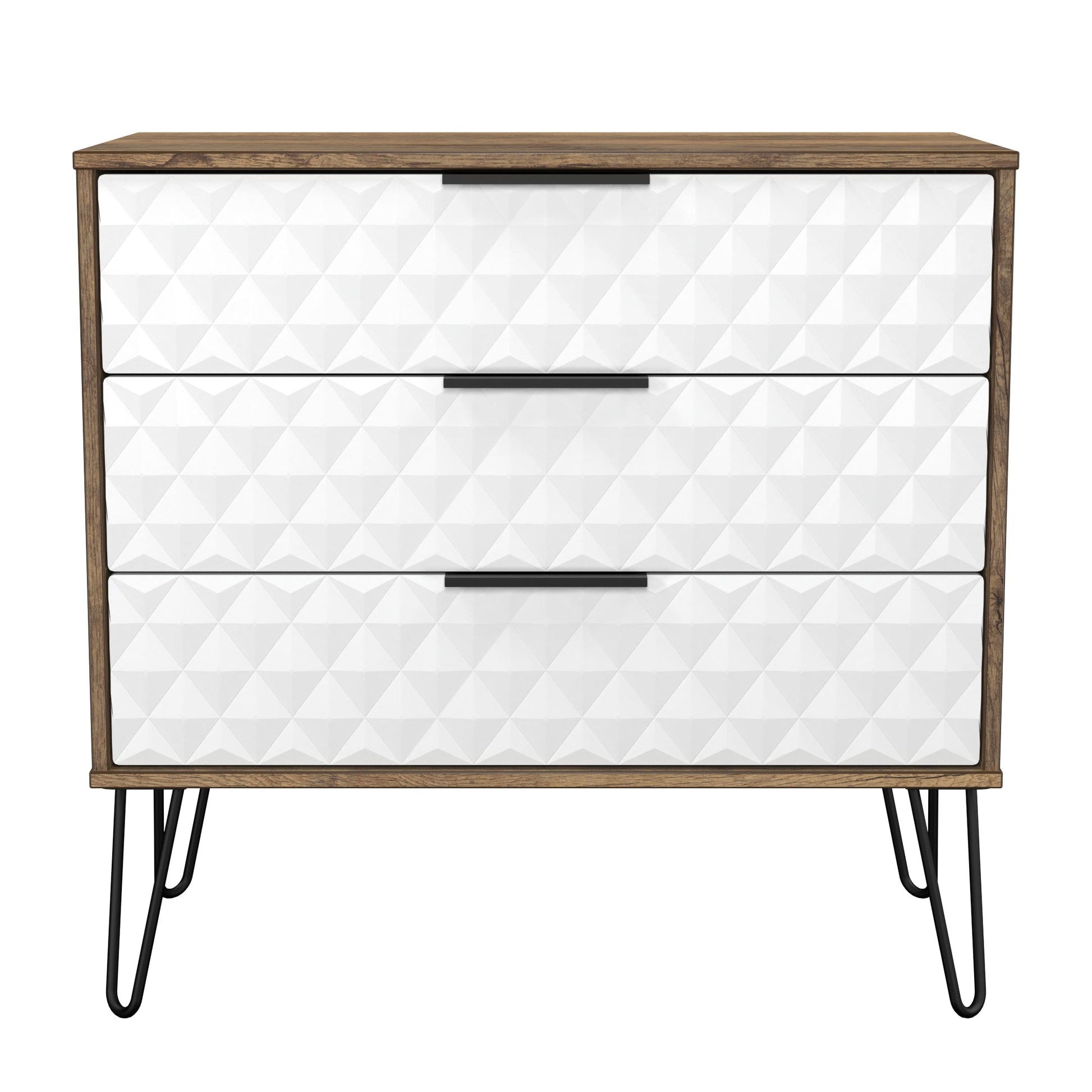 Harlequin Chest of Drawers White & Oak 3 Drawers 77cm