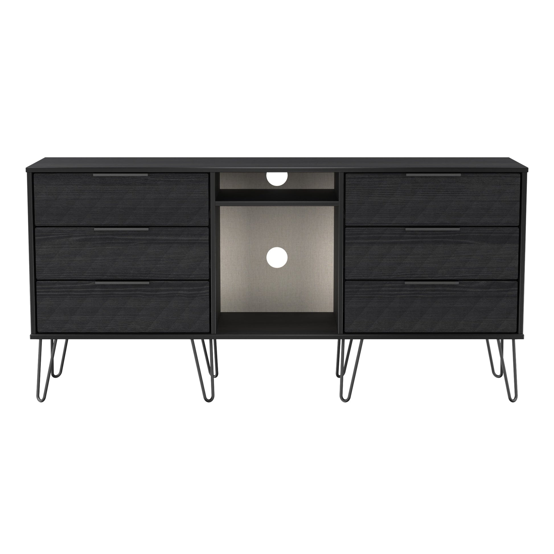 Harlequin Large Sideboard Black 2 Shelves 6 Drawers 152cm