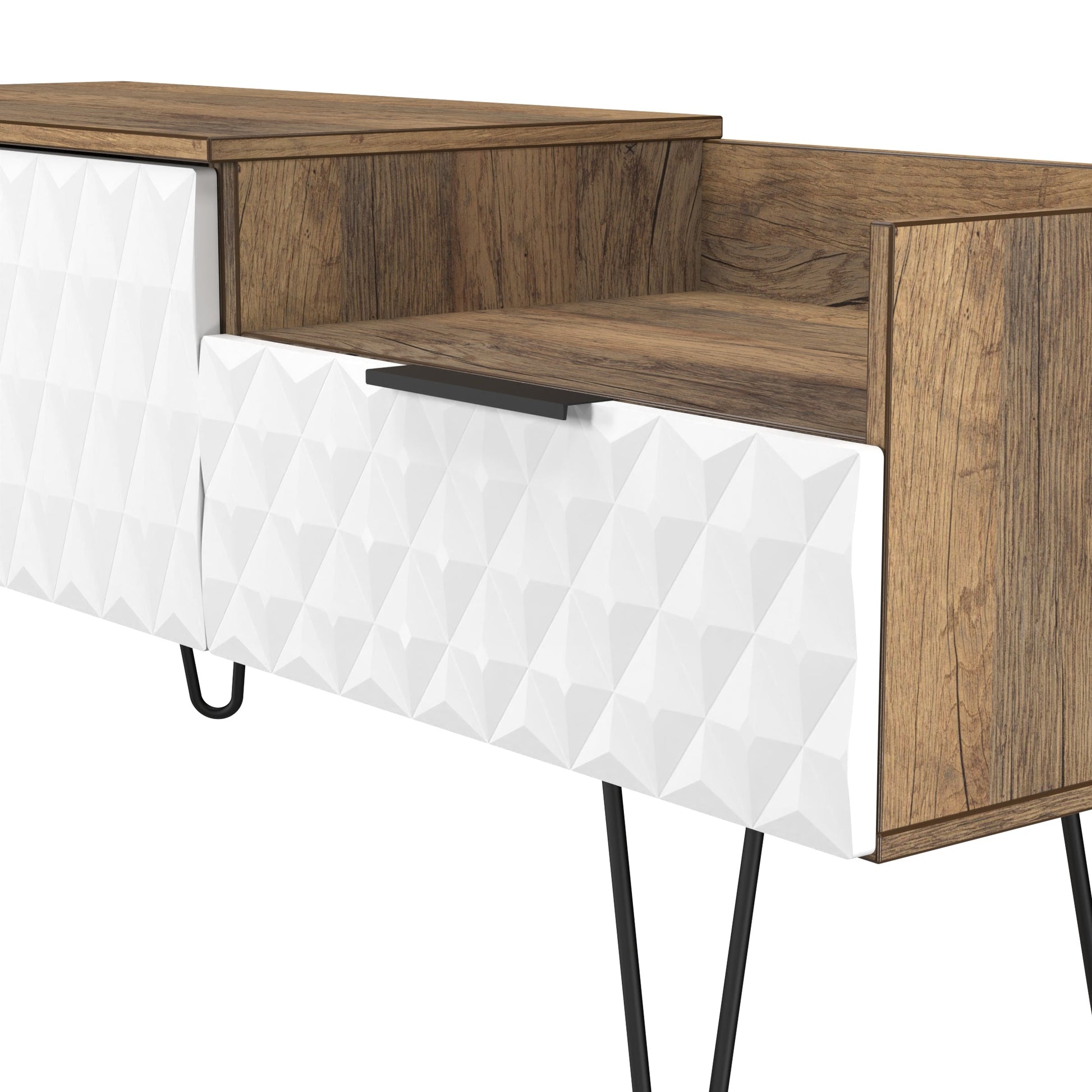 Harlequin TV Unit White & Oak 1 Shelf 2 Drawers 128cm