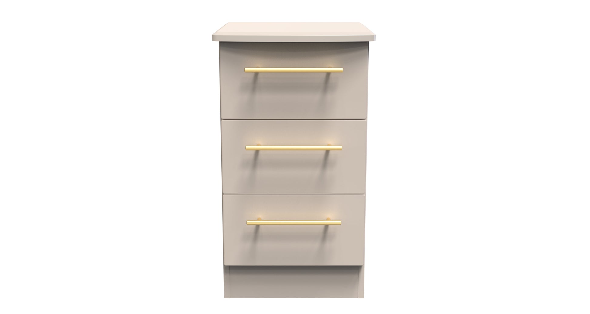 This 3 drawer bedside cabinet is practical and stylish. Perfect for any bedside or as a free standing storage unit. This range is modern and elegant with a smooth clean design. Features sleek gold T-Bar handles and comes ina range of scratch resistant colours. All our furniture is made to order in the United Kingdom, to the highest quality. It is delivered within 10 working days direct to your location of choice by one of our two man delivery teams, and comes fully assembled (although legs may be removed to prevent damage in transit). Part of the Haworth Collection.