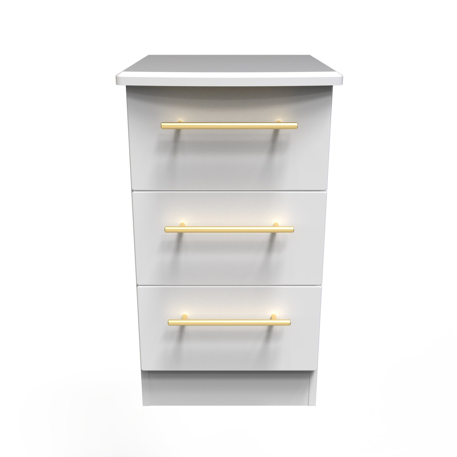 This 3 drawer bedside cabinet is practical and stylish. Perfect for any bedside or as a free standing storage unit. This range is modern and elegant with a smooth clean design. Features sleek gold T-Bar handles and comes ina range of scratch resistant colours. All our furniture is made to order in the United Kingdom, to the highest quality. It is delivered within 10 working days direct to your location of choice by one of our two man delivery teams, and comes fully assembled (although legs may be removed to prevent damage in transit). Part of the Haworth Collection.
