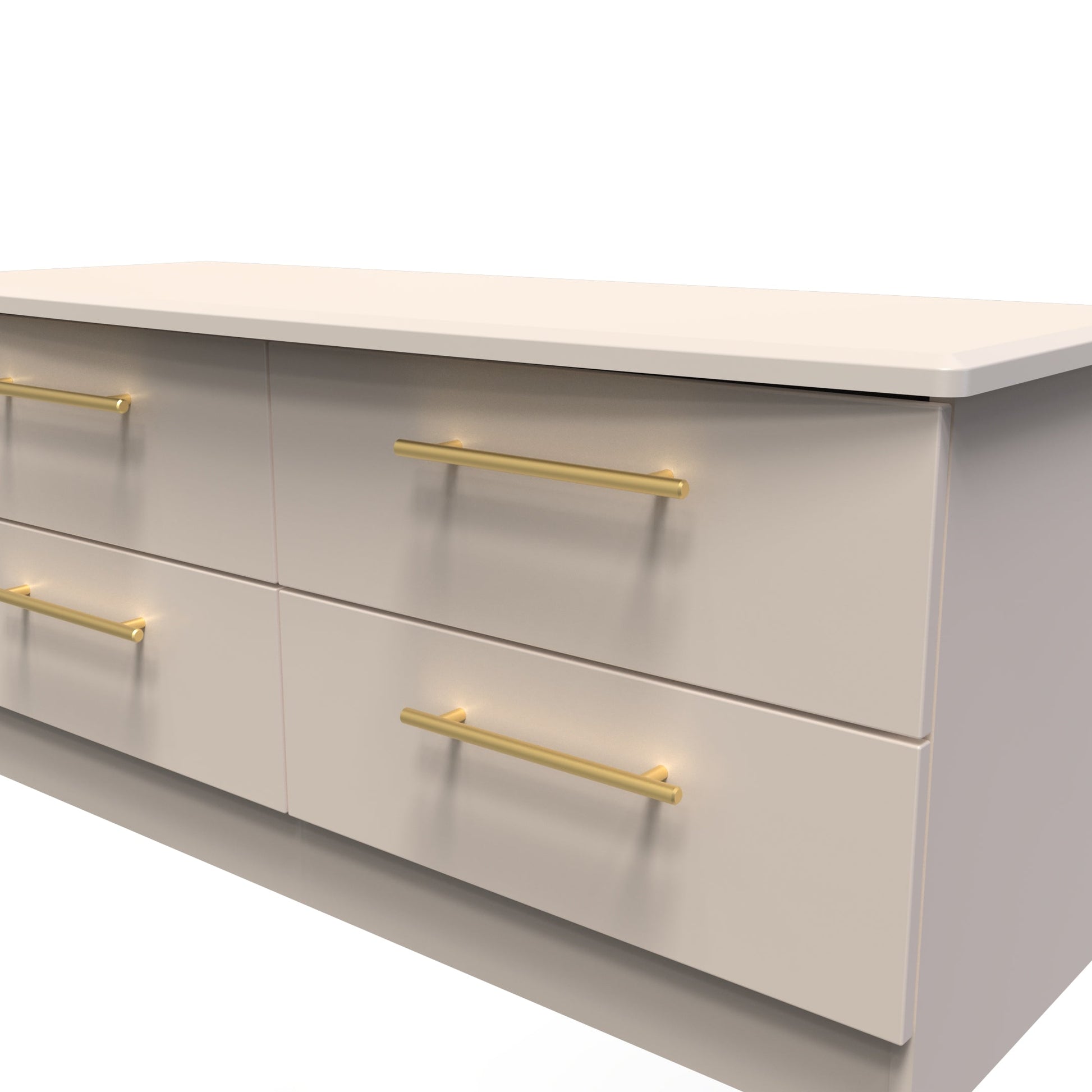 A large 4 drawer bed box. A Perfect storage solution for any room (not just the end of your bed). Could also be used as a low level TV/Media stand. This range is modern and elegant with a smooth clean design. Features sleek gold T-Bar handles and comes ina range of scratch resistant colours. All our furniture is made to order in the United Kingdom, to the highest quality. It is delivered within 10 working days direct to your location of choice by one of our two man delivery teams, and comes fully assembled (although legs may be removed to prevent damage in transit). Part of the Haworth Collection.