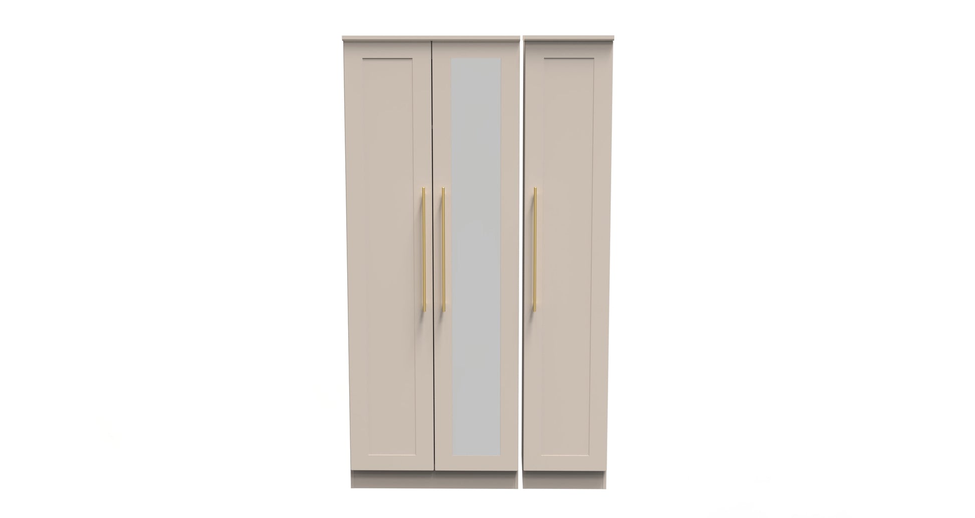 This tall triple 3 door wardrobeis perfect for any bedroom when a normal wardrobe is just not large enough. Also features a full height single mirrored door. This range is modern and elegant with a smooth clean design. Features sleek gold T-Bar handles and comes ina range of scratch resistant colours. All our furniture is made to order in the United Kingdom, to the highest quality. It is delivered within 10 working days direct to your location of choice by one of our two man delivery teams, and comes fully assembled (although legs may be removed to prevent damage in transit). Part of the Haworth Collection.