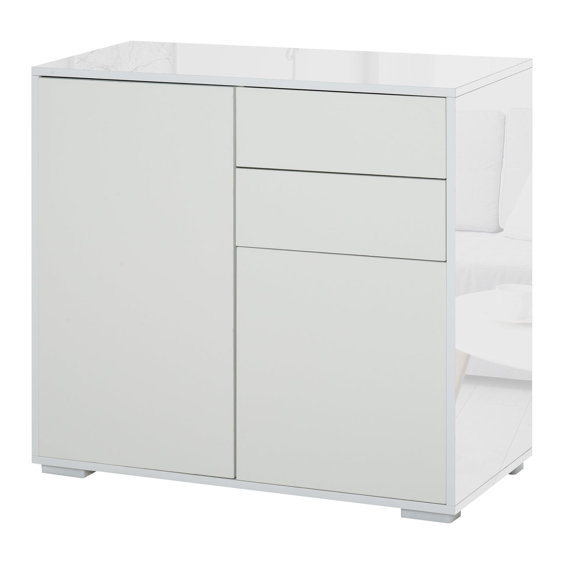 This small sideboard from HOMCOM is a durable and stylish addition to every home, keeping your space clean and tidy with ease. It's made from particle board for a durable structure, with anti-tipping straps on the back for safety. With the push-click design, drawers and cabinet doors are quick and effortless to open and close. The elevated base allows air to flow through for freshness. An effortless way to bring in sleek style into your living space with our HOMCOM storage cupboard.