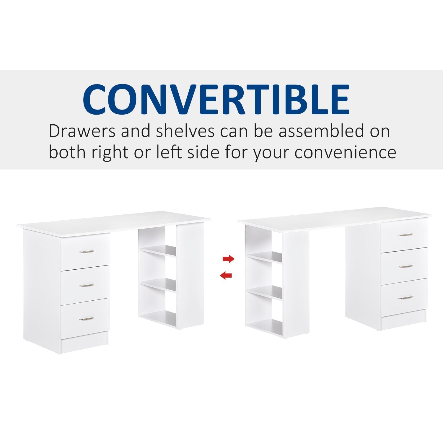 Keep your work area modern and simple with this desk with drawers from Homcom. Made from particle board for everyday durability, the study table is crafted into a boxy shape in a neutral colour for simplicity - suitable for plenty of home and office spaces. Features three drawers on the right for enclosed storage and three shelves for open display: a great mix for all your work, papers and decorative bits. Finished with handles on drawers.