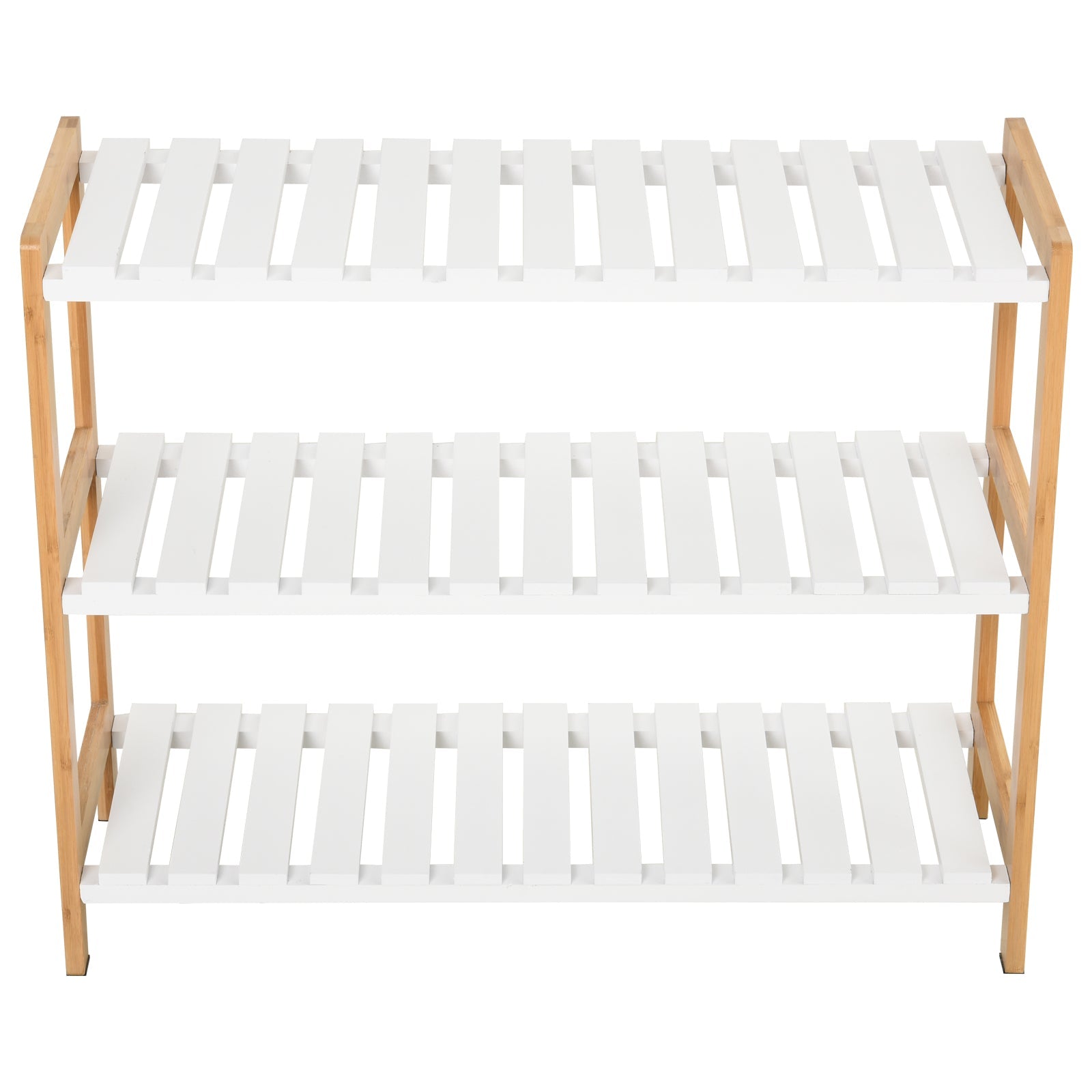 Homcom 3-Tier Shoe Rack Wood Frame Slatted Shelves Spacious Open Hygienic Storage Home Hallway Furniture Family Guests 70L x 26W x 57.5H cm - Natural