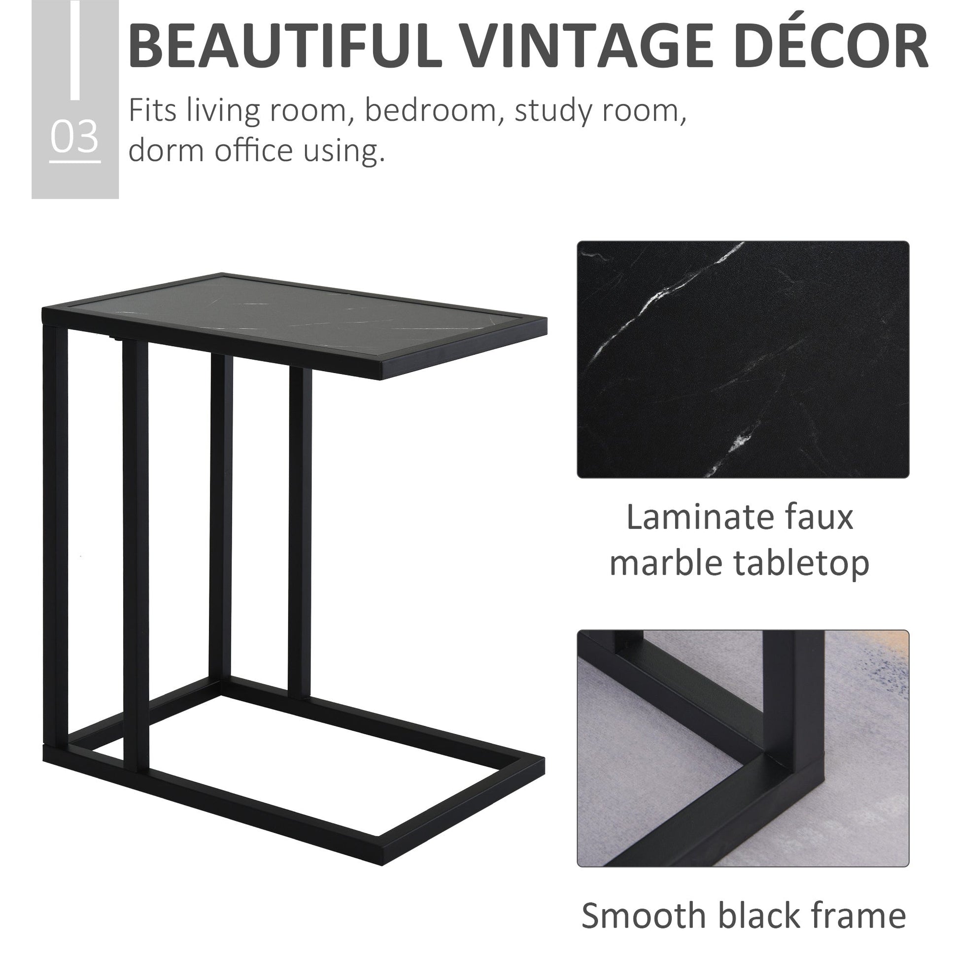 Homcom C Shape End Table W/Metal Frame Marble-Effect Top Sofa Side Table Narrow Snack Coffee Table For Living Room Black
