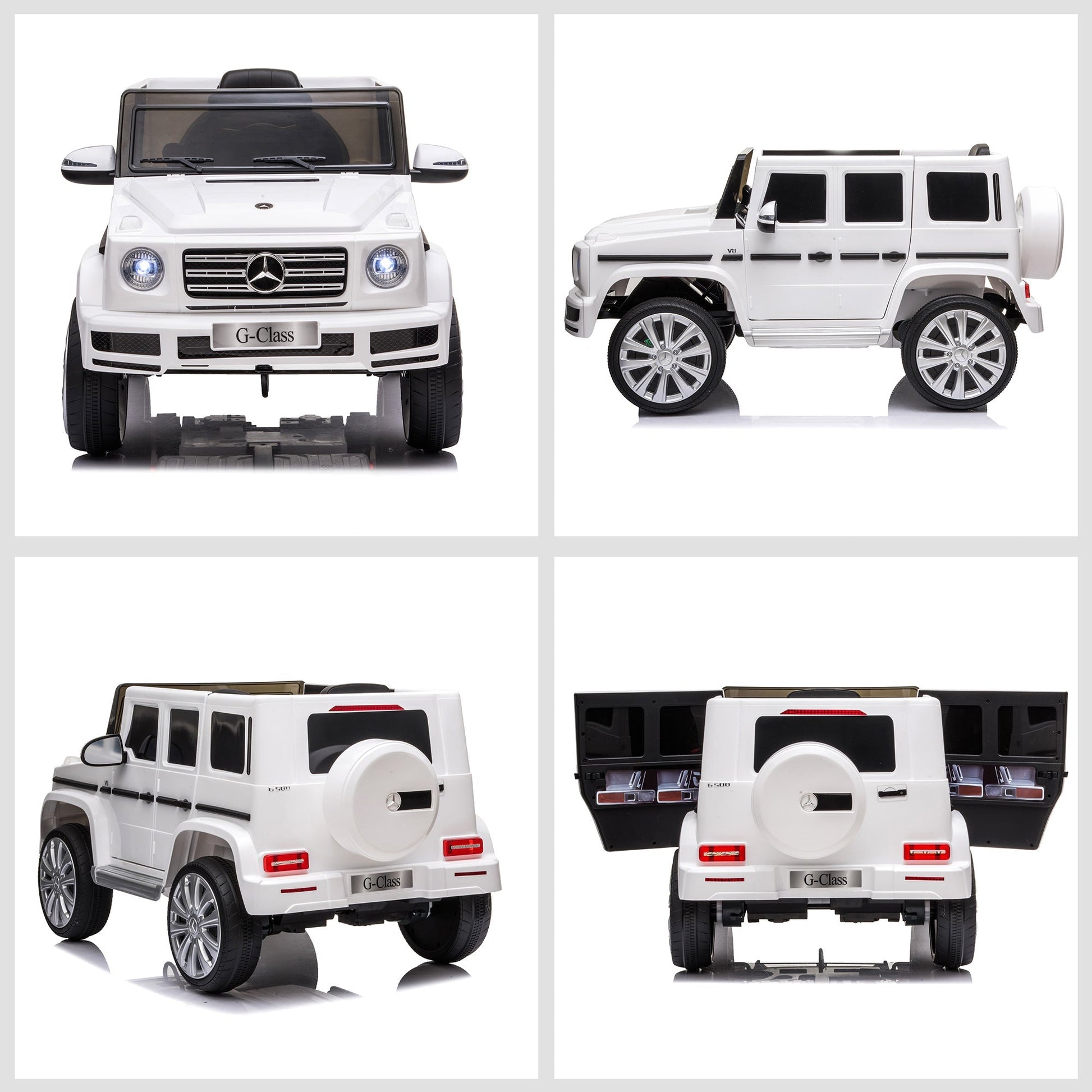 Homcom Compatible 12V Battery-powered 2 Motors Kids Electric Ride On Car Mercedes Benz G500 Toy with Parental Remote Control Music Lights MP3 Suspension Wheels for 3-8 Years Old White