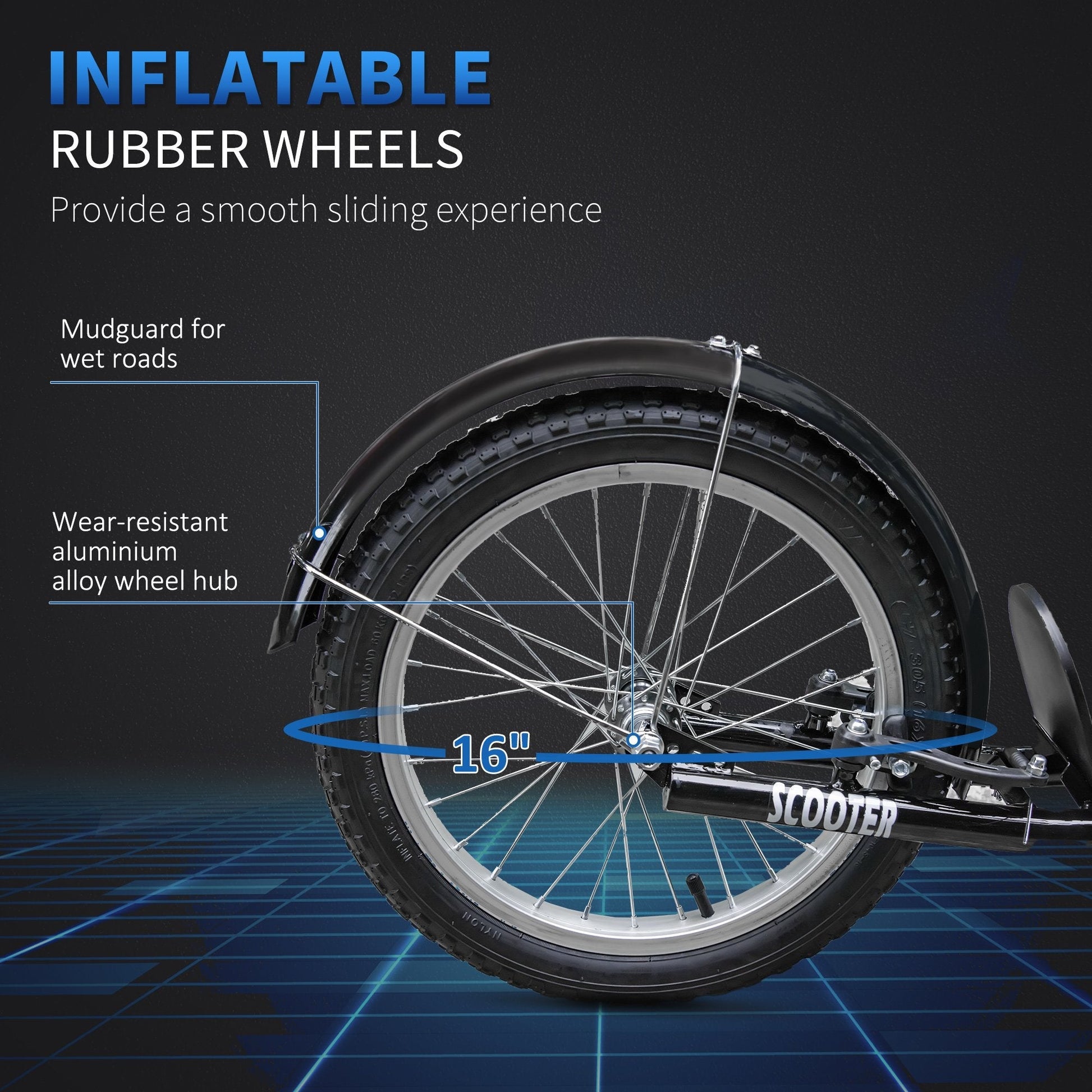 Homcom Kids Scooter Adjustable With Inflatable Wheel Brake Basket Cupholder Mudguard